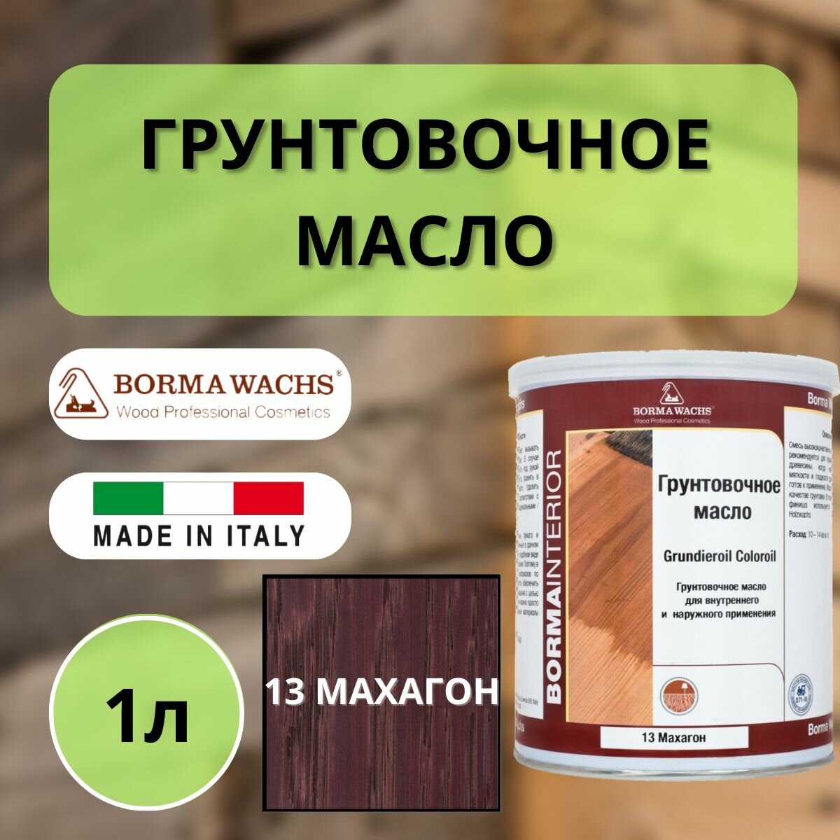 Масло грунтовочное BORMA GRUNDIEROIL для обработки древесины для наружных и внутренних работ 1л 13 Махагон R3910-13 декоративная пропитка / морилка информация: