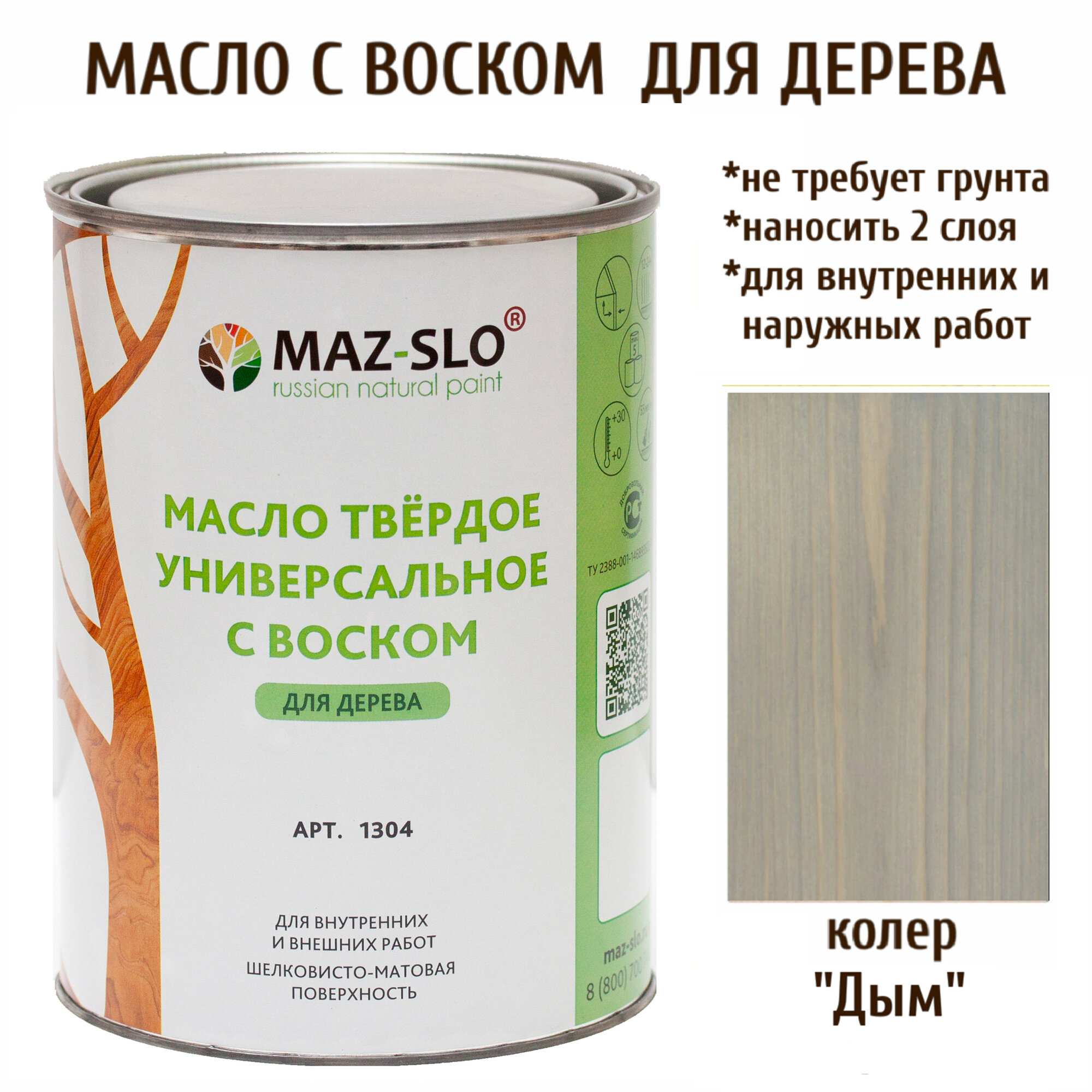 Масло для дерева с воском Maz-slo, цвет "Дым", 1 литр, матовое, лессирующее, УФ-защита информация: