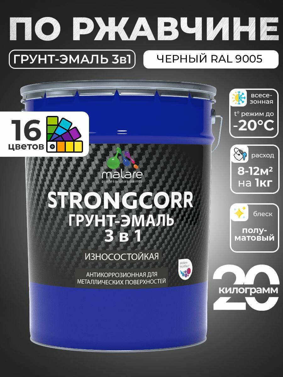 10 цен на Грунт-Эмаль Malare 3 в 1 для металлических поверхностей, краска для металла, износостойкая, полуматовая, RAL 9005, черный, 20 кг.