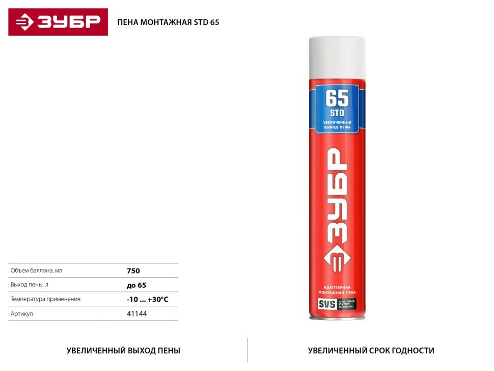 Отзывы на Пена "65" монтажная, адаптерная, всесезонная, 750мл, ЗУБР, ( 41144 )