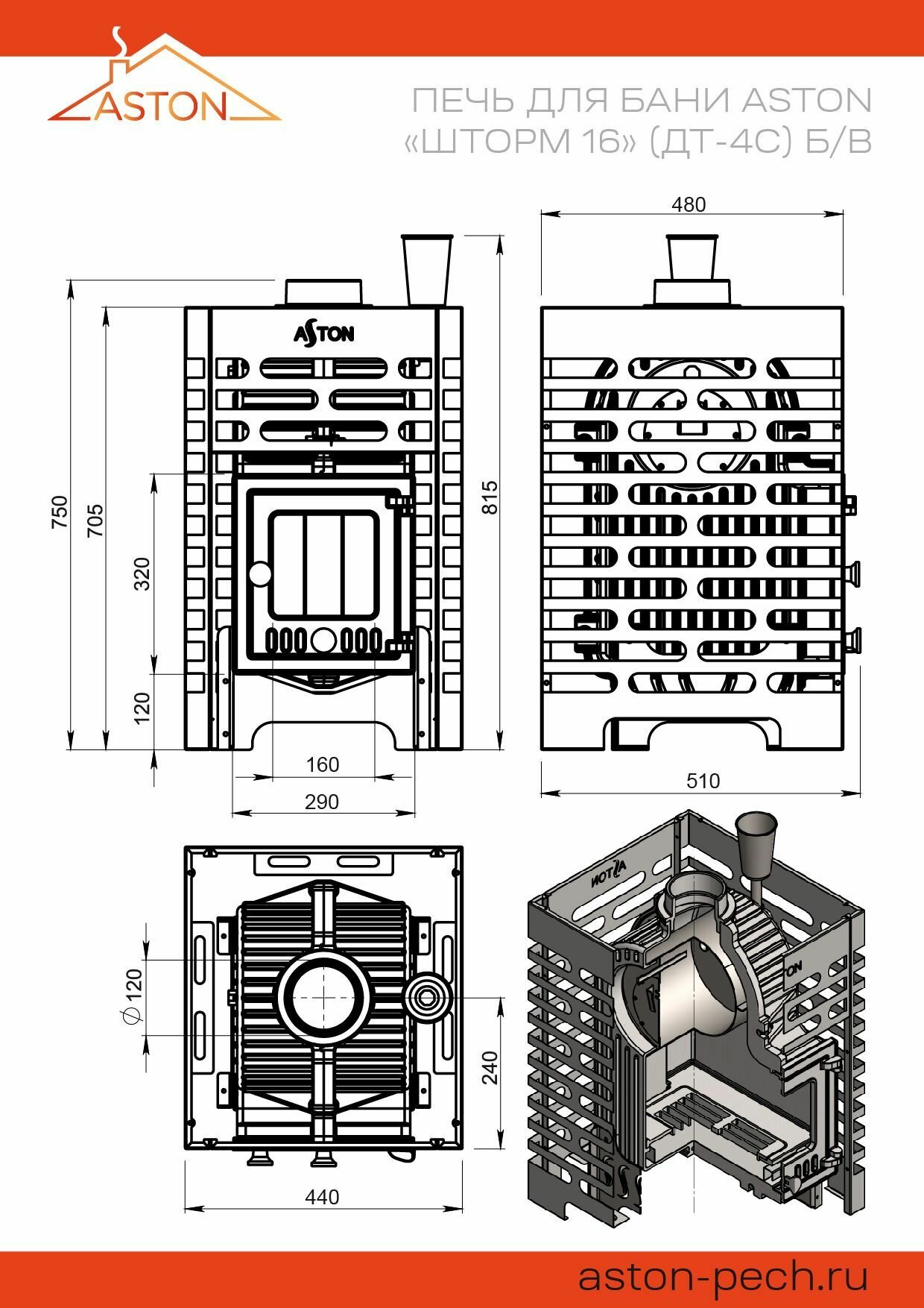 Печь для бани дровяная ASTON «Шторм 16» (ДТ-4С) б/в информация: