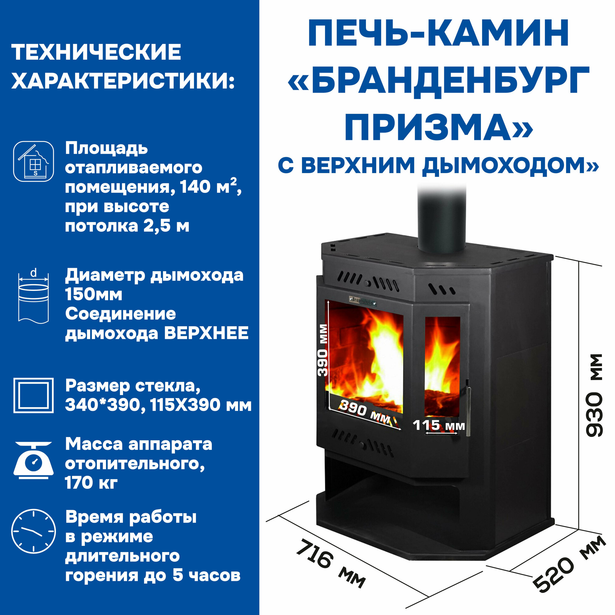Печь-камин Бранденбург Призма с верхним дымоходом, до 140 м2 информация: