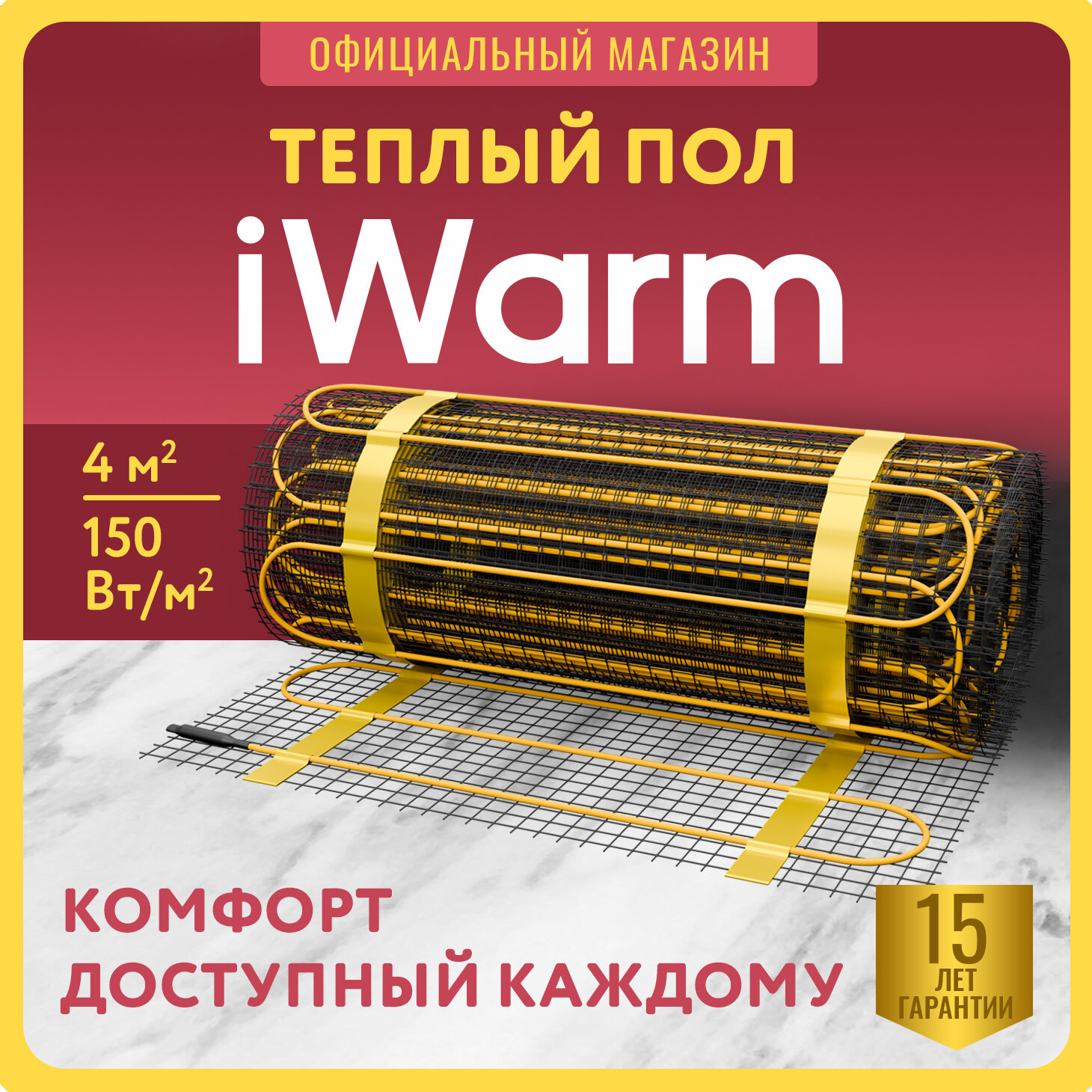 Теплый пол электрический под плитку iWarm 4 кв.м 600 Вт Нагревательный мат мощный эффективный тонкий двухжильный 3 600 ₽