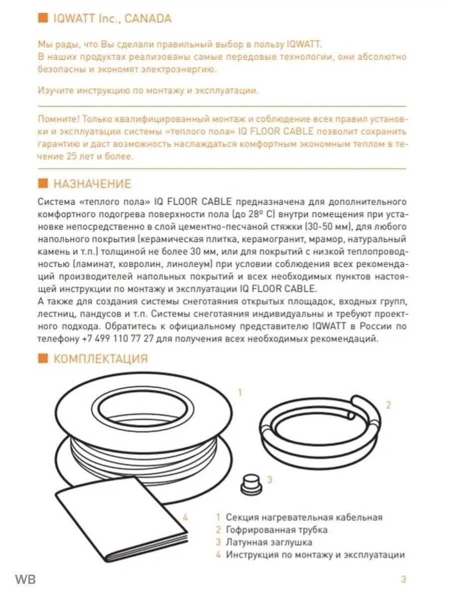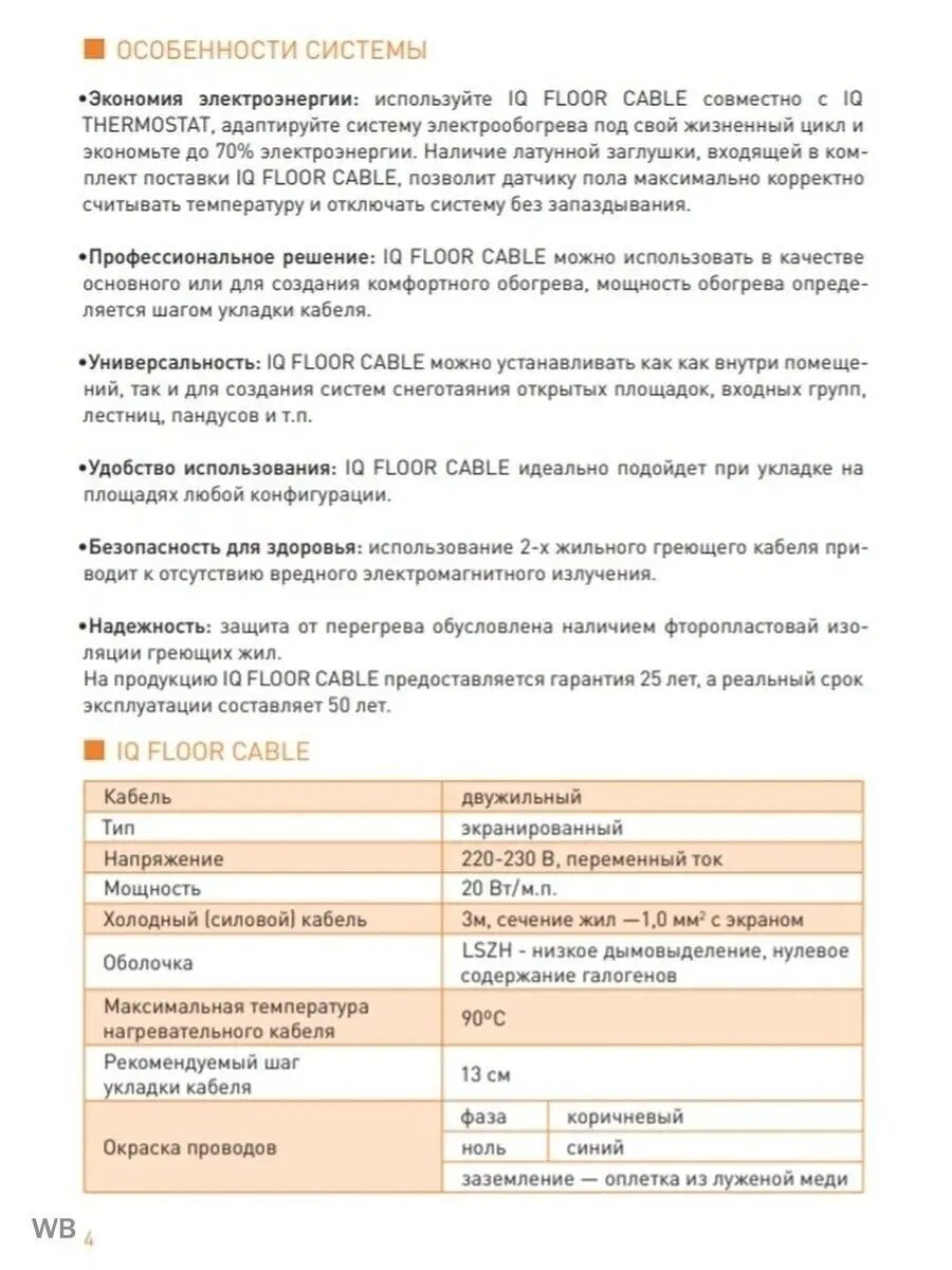 Греющий кабель IQ FLOOR CABLE 20 Вт/м - 30 м информация: