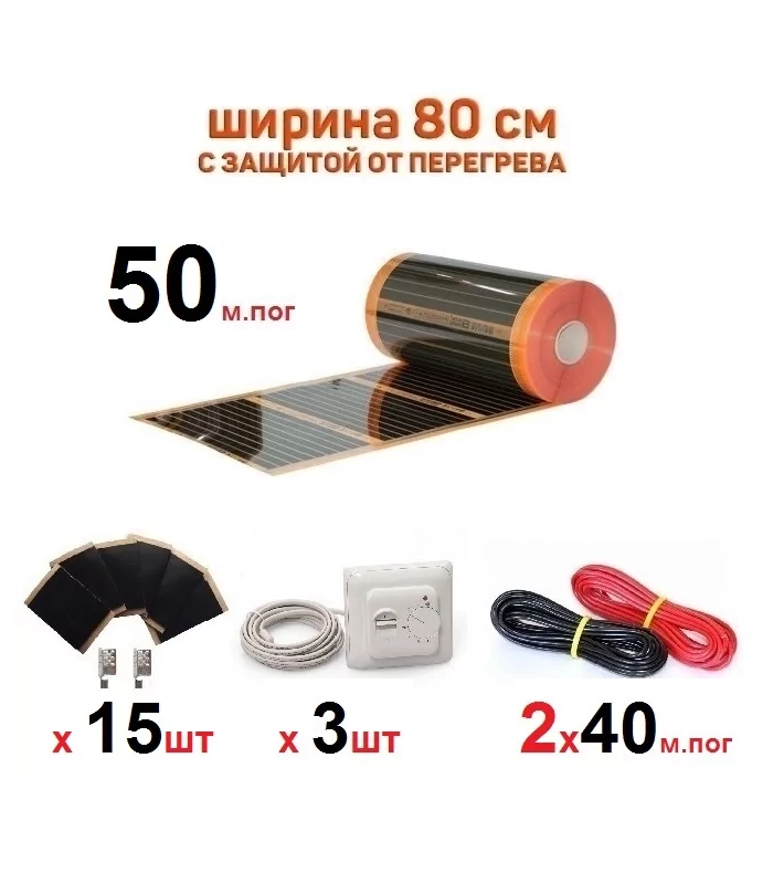 Инфракрасный теплый пол Eastec PTC 40 м. кв 8800 Вт саморегулирующий готовый комплект 80 см х 50 м информация: