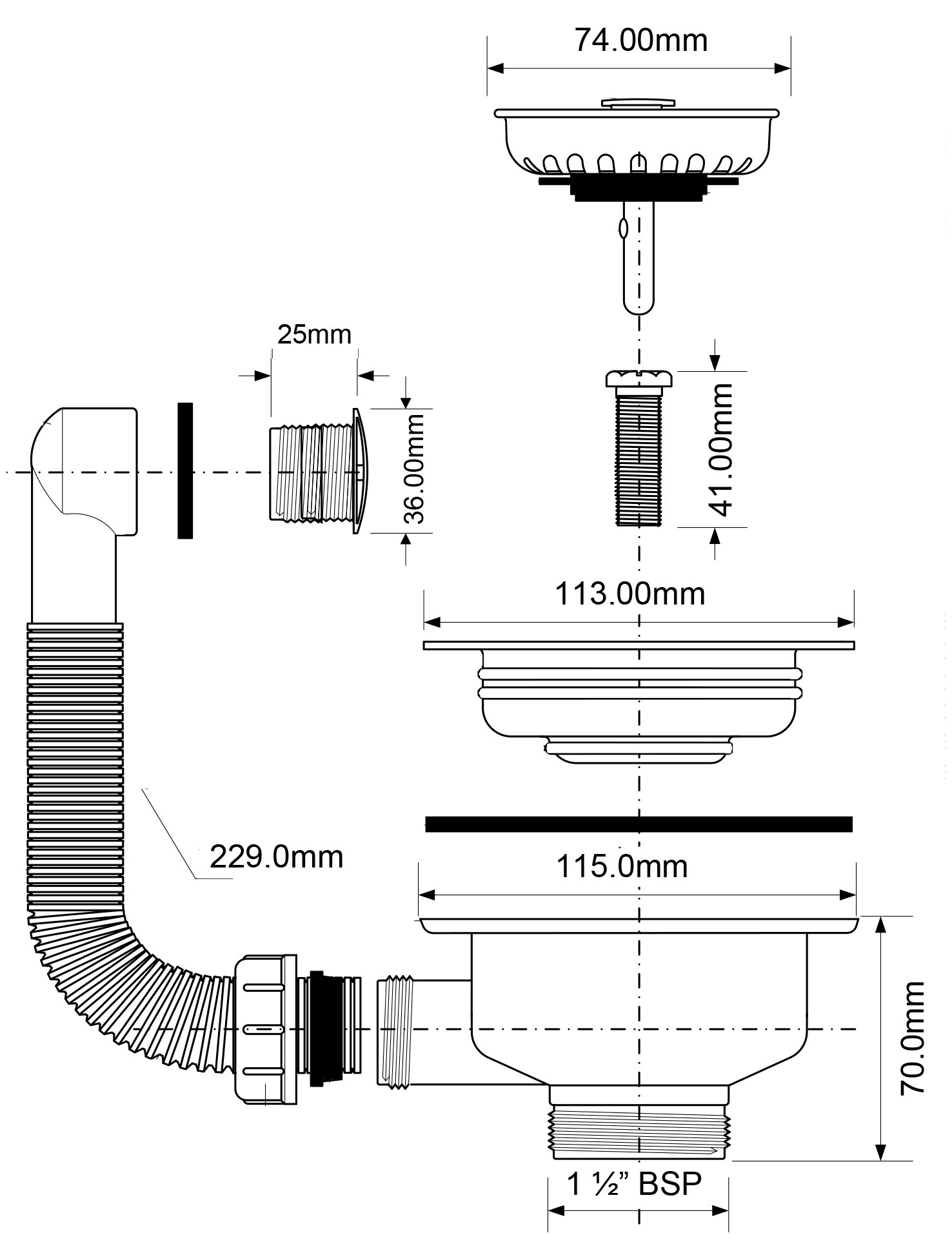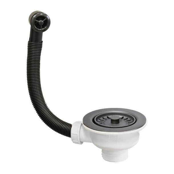 Сифон для мойки большая горловина с переливом, с отводом под сливной шланг и со съёмной корзинкой для мусора