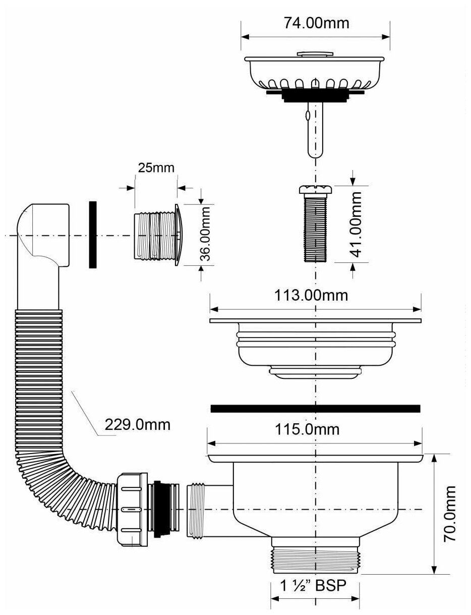 Отзывы на Слив-перелив Mcalpine OF2-113S-MLB, L=235 х 25 мм, 113 мм реш., вых. 1 1/2", для раковины кр.отв., черный мат.лава