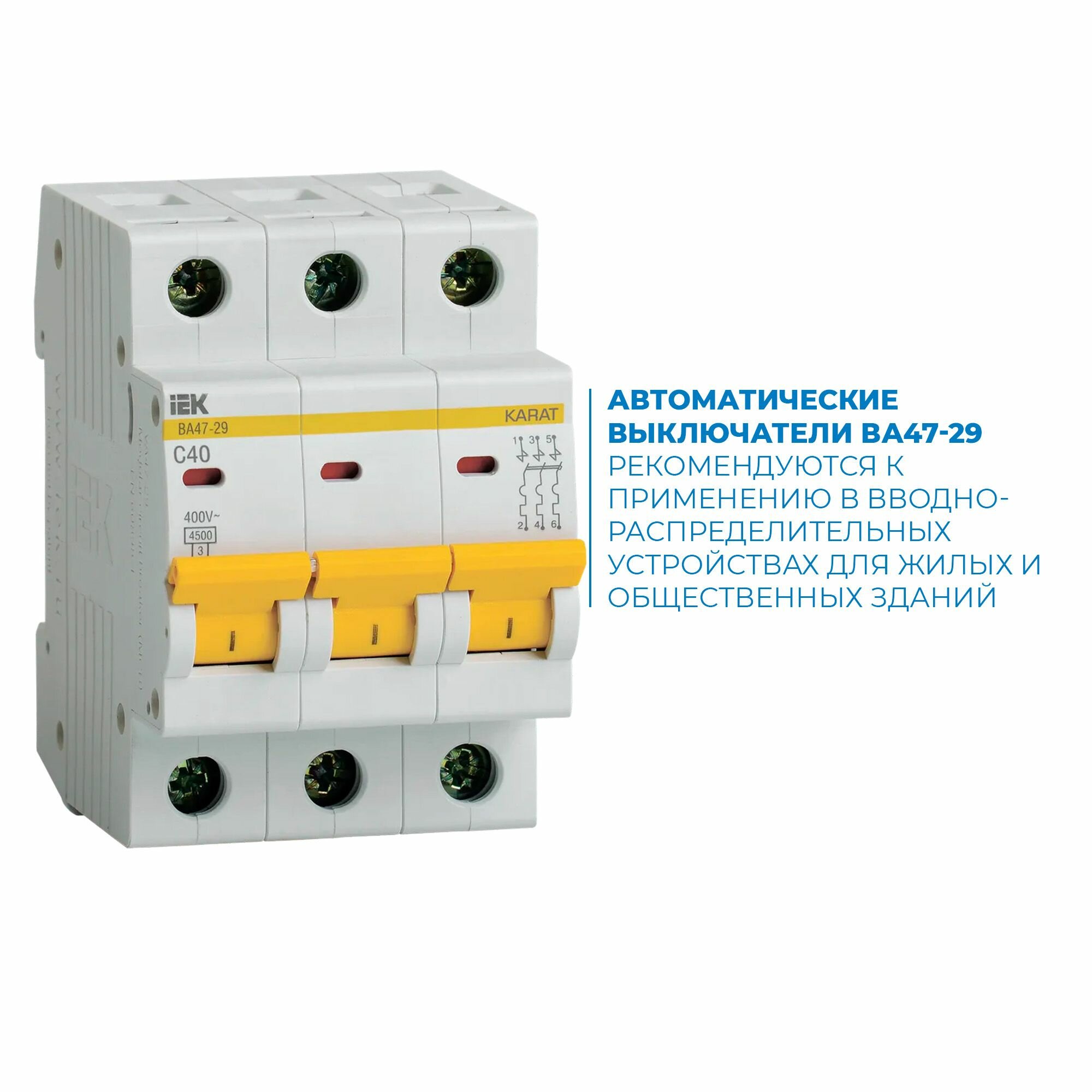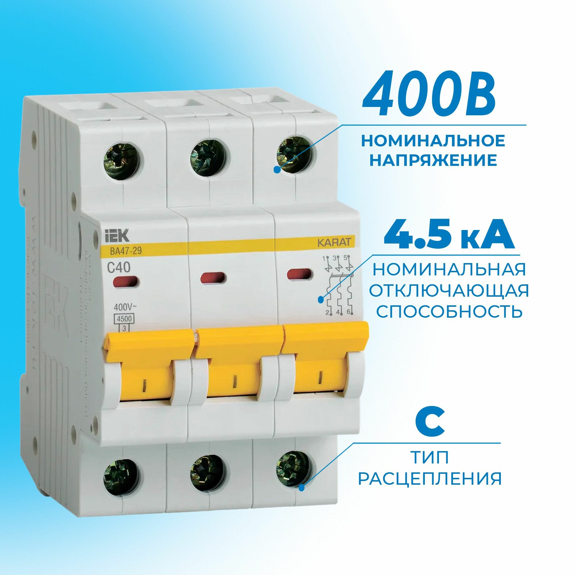 Автоматический выключатель IEK KARAT ВА 47-29, 3P, C, IP20, монтаж на DIN-рейке 950 ₽