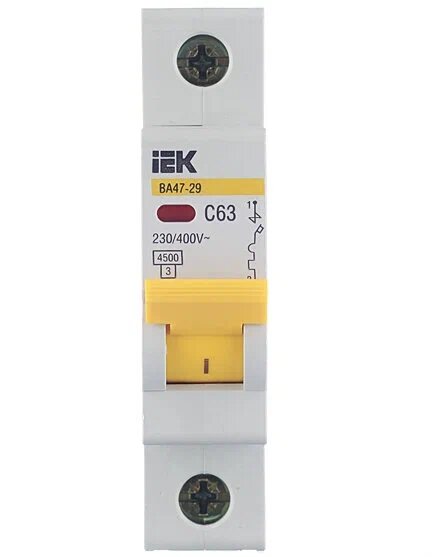 Отзывы на IEK Автоматический выключатель ВА47-29 1Р 63А 4,5кА х-ка С MVA20-1-063-C