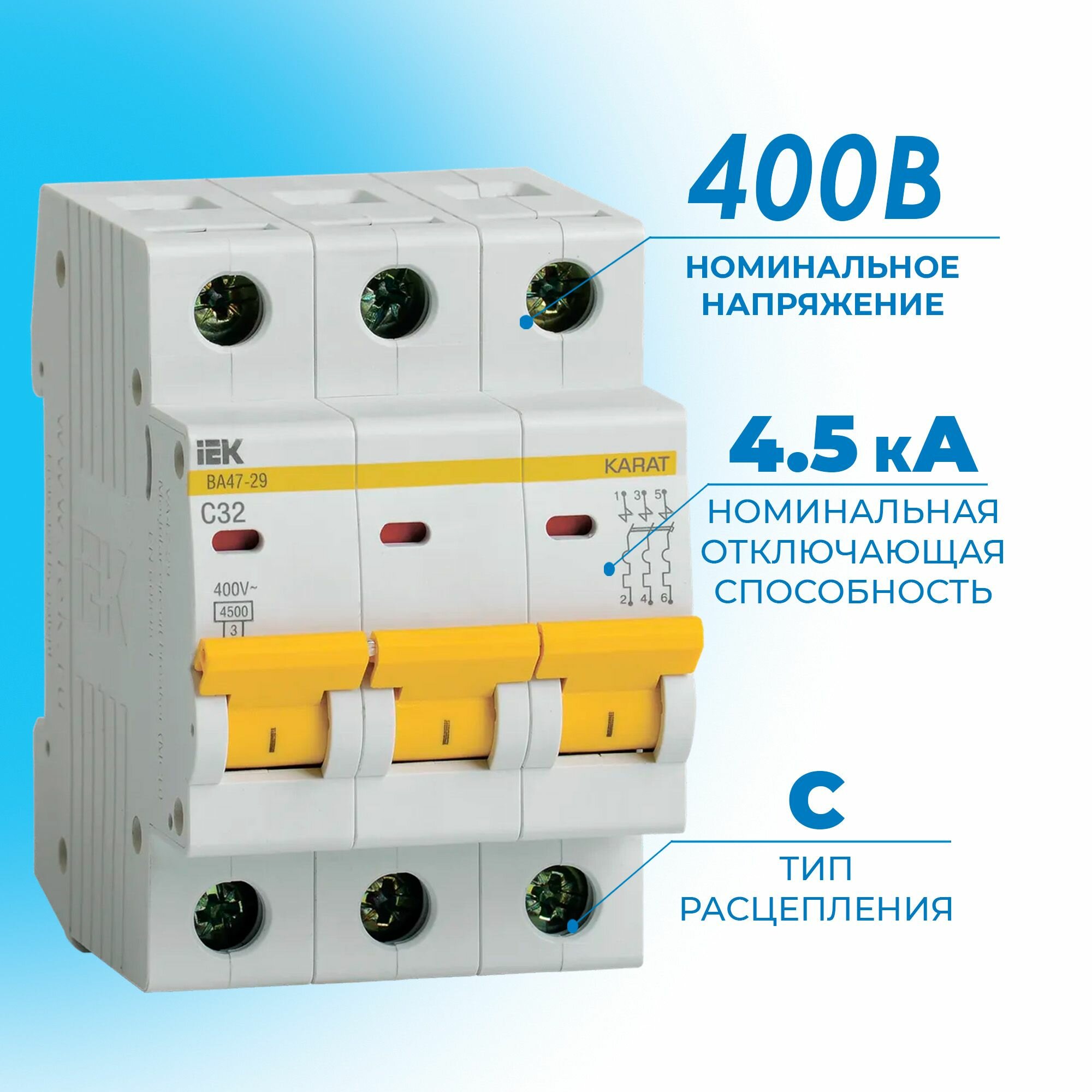 Выключатель автоматический модульный 1п C 32А 4.5кА ВА47-29 KARAT IEK MVA20-1-032-C