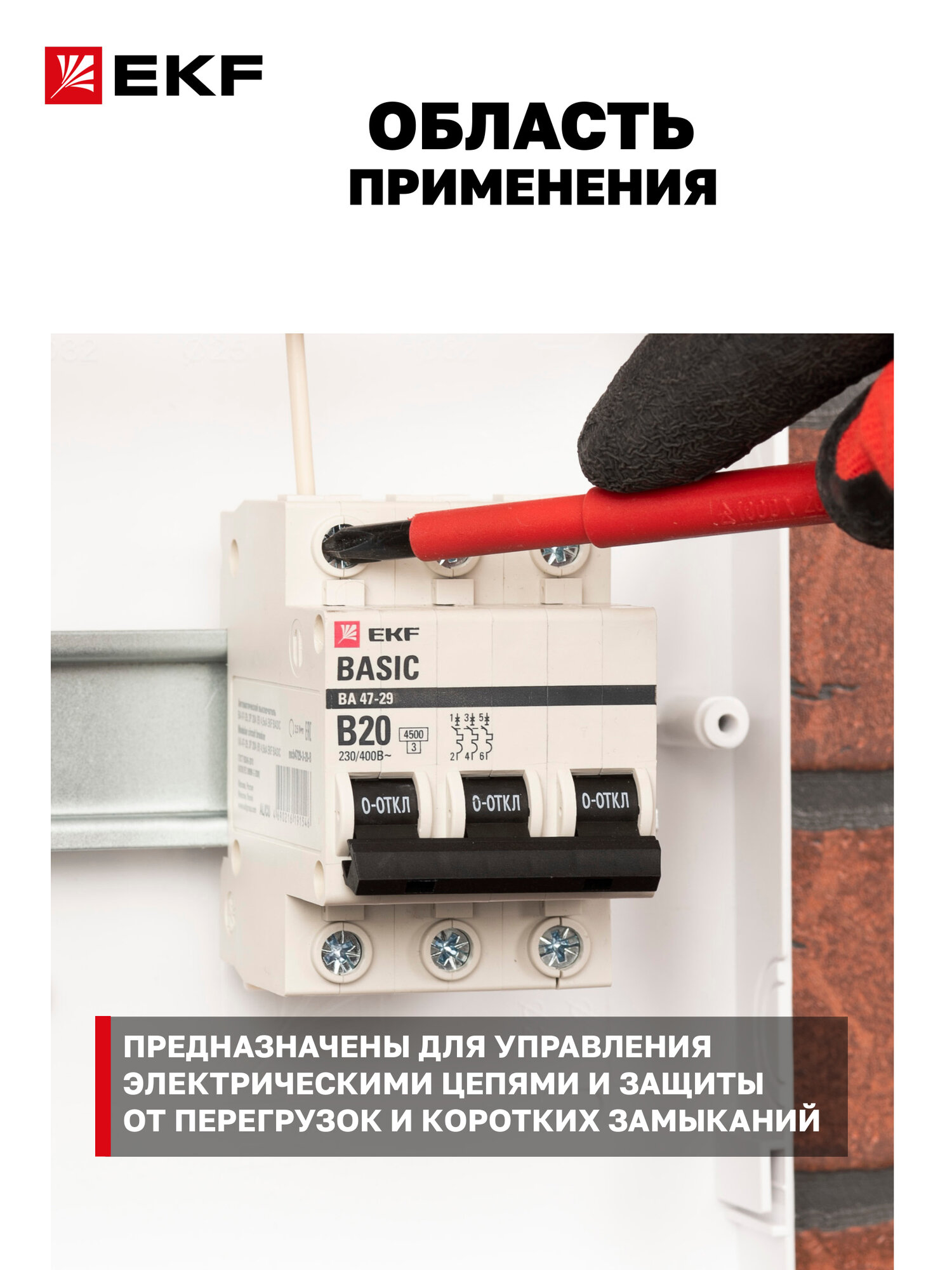 Автоматический выключатель EKF / ЕКФ ВА47-29 Basic 1Р 20А характеристика С 4.5кА, mcb4729-1-20C / электроавтомат 462 ₽