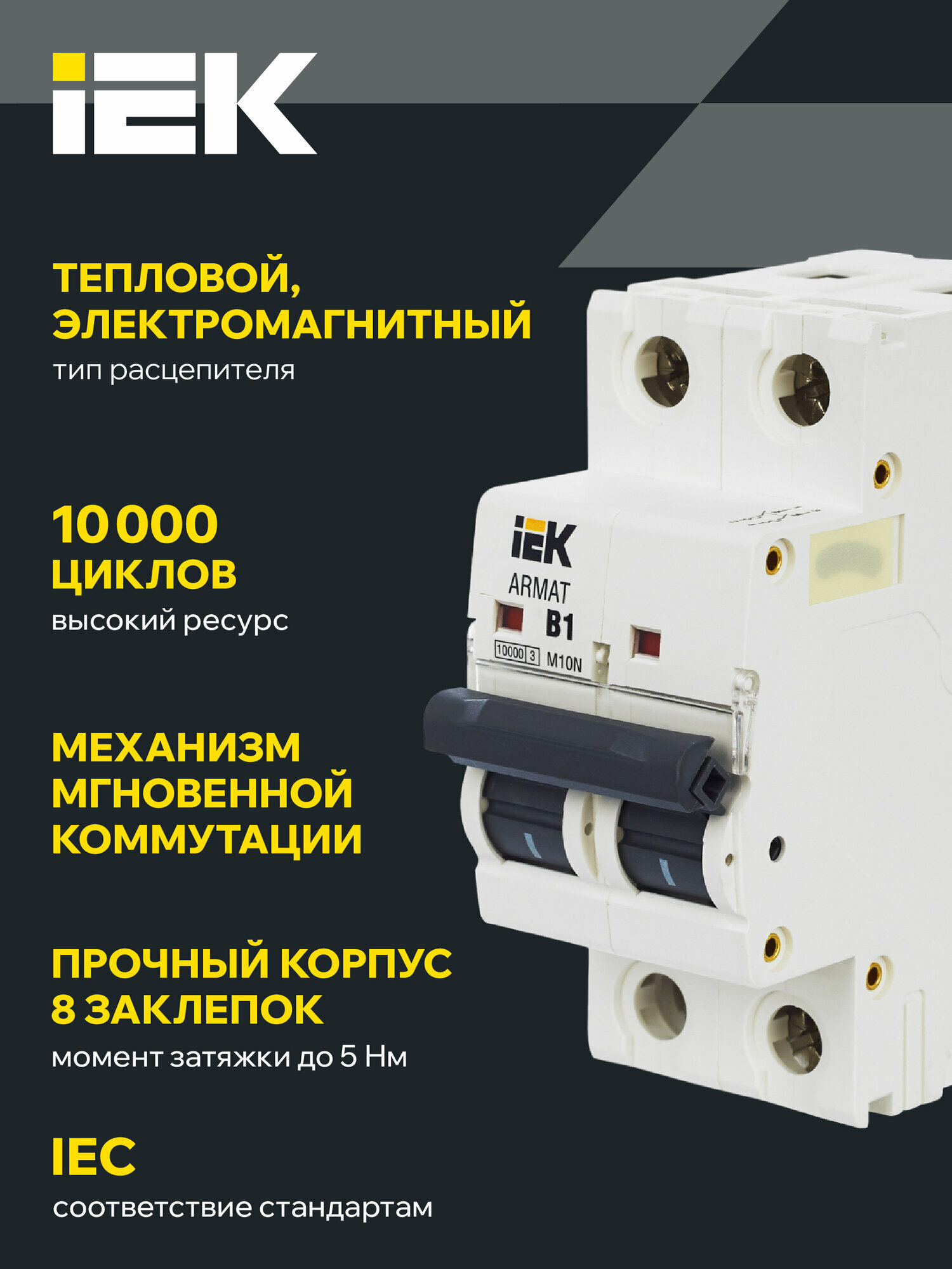 ARMAT Выключатель автоматический двухполюсный B 63А M10N, IEK ARM10N2B063 (1 шт.)