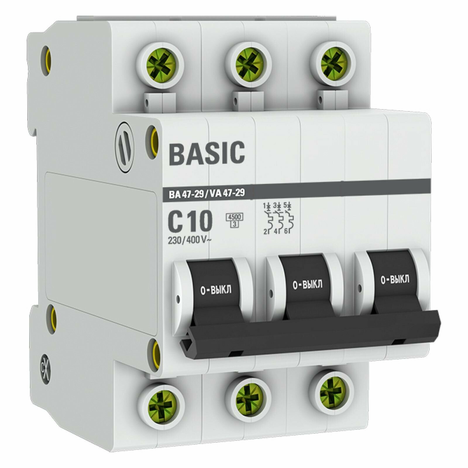 Автоматический выключатель 3P 10А (C) 4,5кА ВА 47-29, EKF Basic информация: