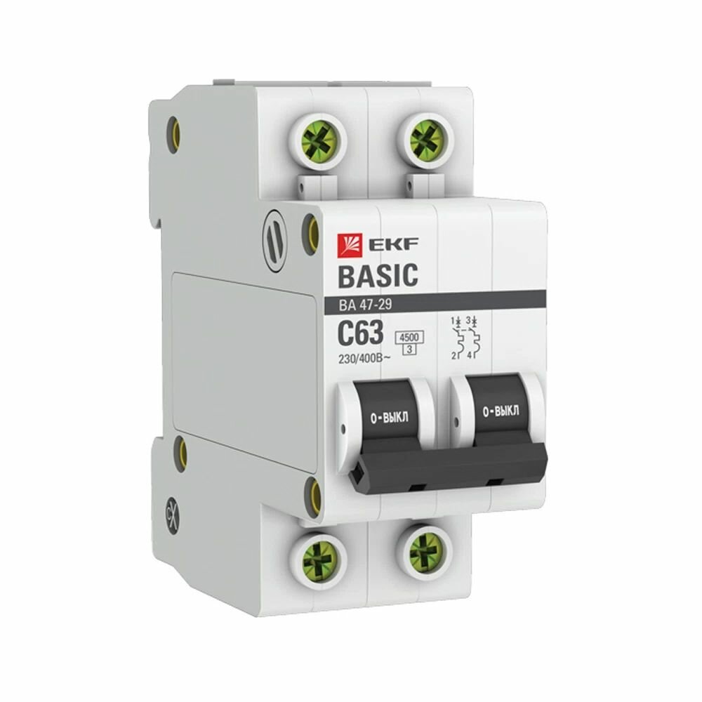 Автоматический выключатель модульный EKF Basic ВА 47-29 2P 63А тип С 4,5 кА 230 В (mcb4729-2-63C) информация: