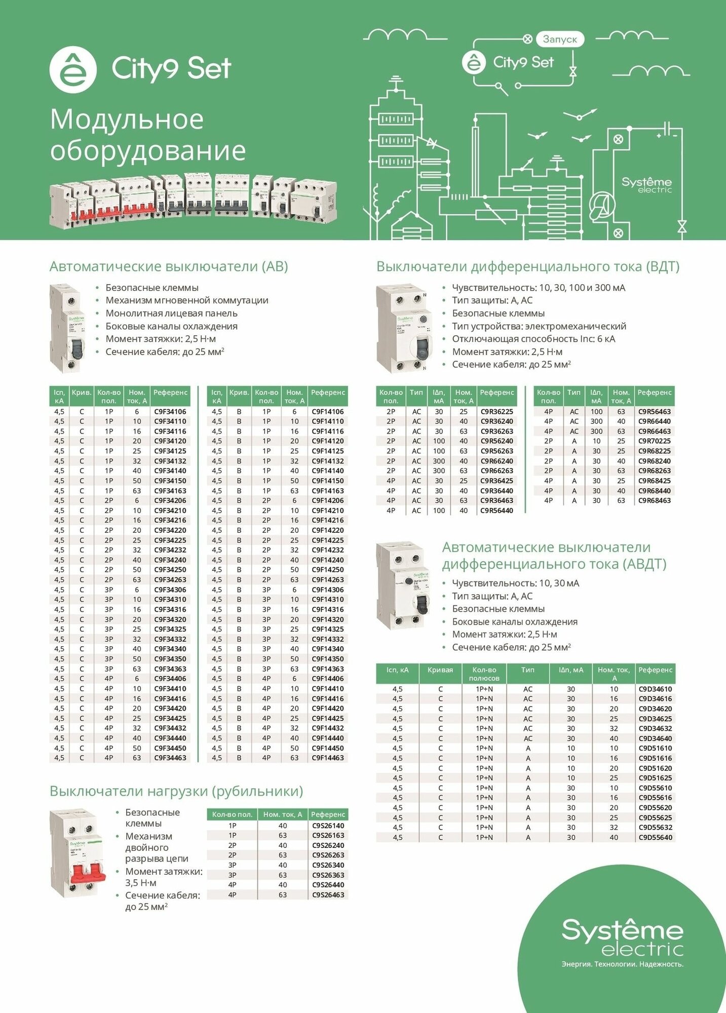 City9 Set Автоматический выключатель АВ С 25А 4P 4.5kA 400В