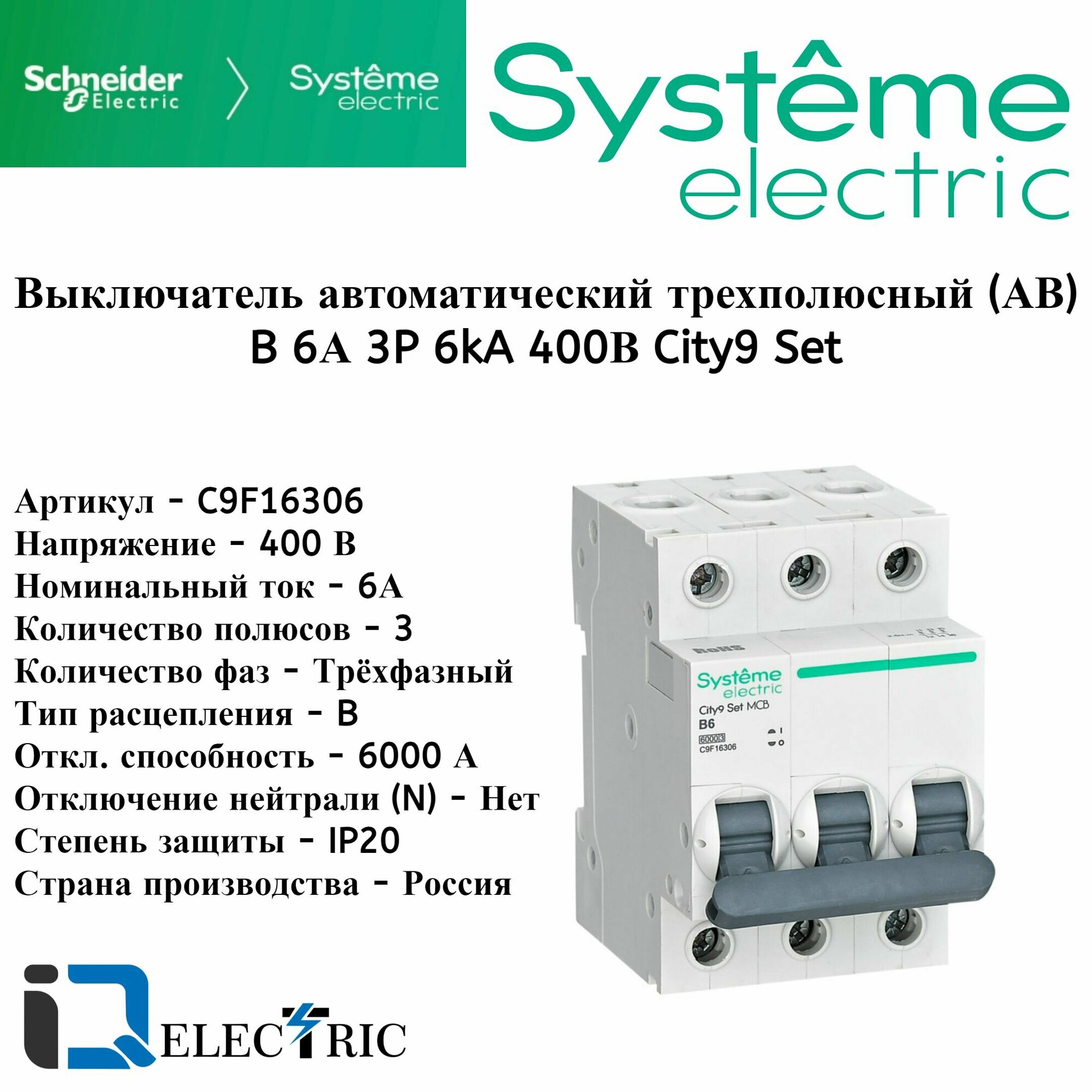 Systeme Electric City9 set автоматический выключатель ав b 6а 3p 4.5ka 400в C9F14306 2 560 ₽