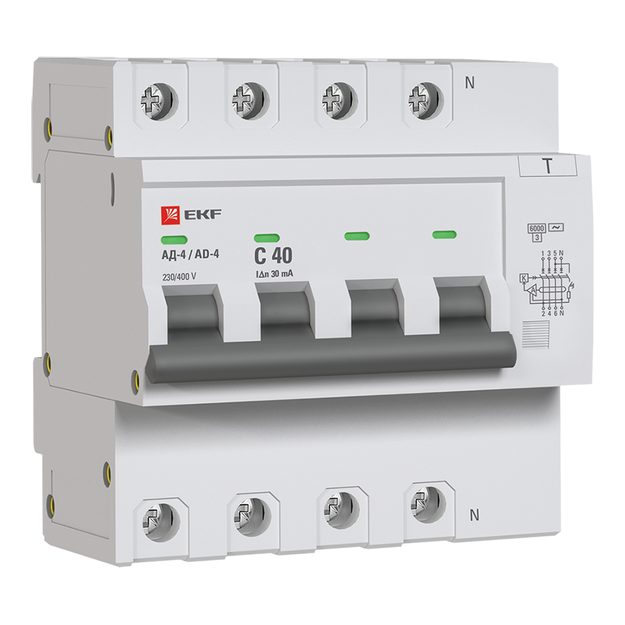 Отзывы на Дифференциальный автомат АД-4 40А- 30мА (хар. C, AC, электронный) 6кА EKF PROxima