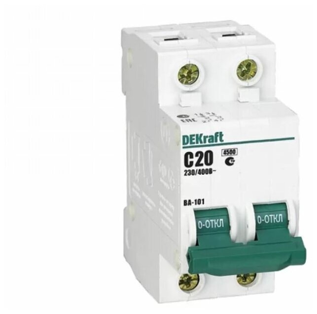 Дифференциальный автомат 2п 20А (диф) однофазный АВДТ 1Р+N 30мА тип AC х-ка C ДИФ-103 4,5кА DEKraft 16053DEK (комплект из 2шт)