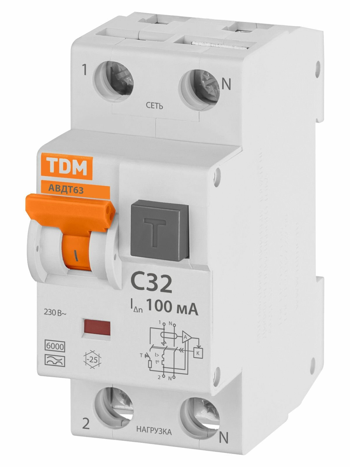 Дифференциальный автомат TDM ELECTRIC АВДТ 32 2П C 4.5 кА AC электронный