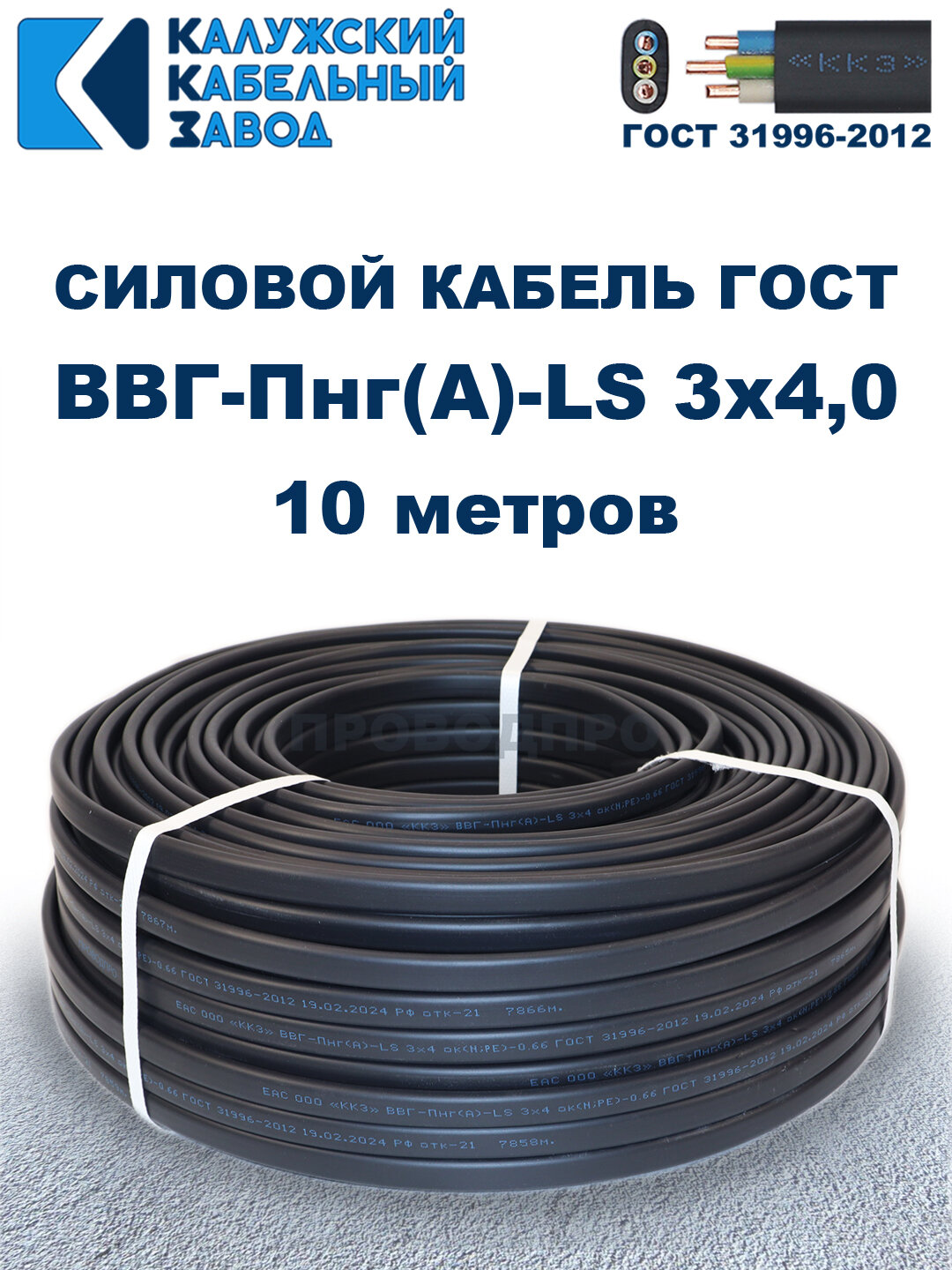 Отзывы на Кабель силовой ВВГ-Пнг(А)-LS 3х4,0 ГОСТ. 10 метров. Кaлyжcкий кабельный зaвoд