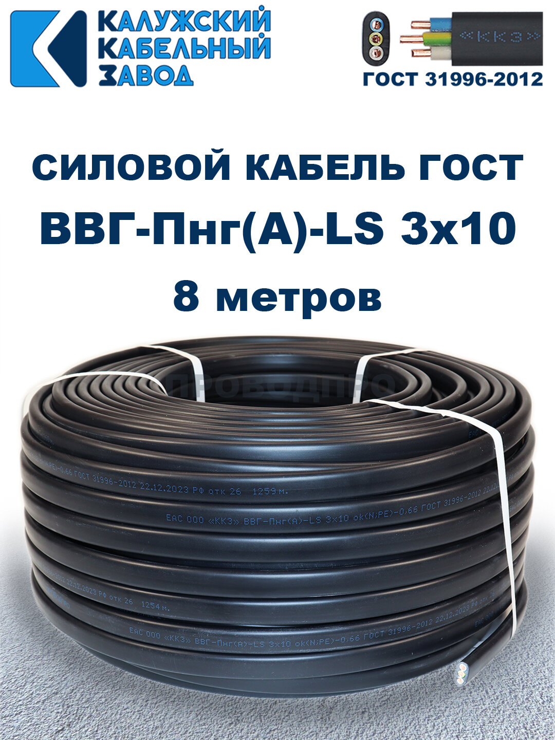Кабель силовой ВВГ-Пнг(А)-LS 3х10 ГОСТ. 8 метров. Кaлyжcкий кабельный зaвoд информация: