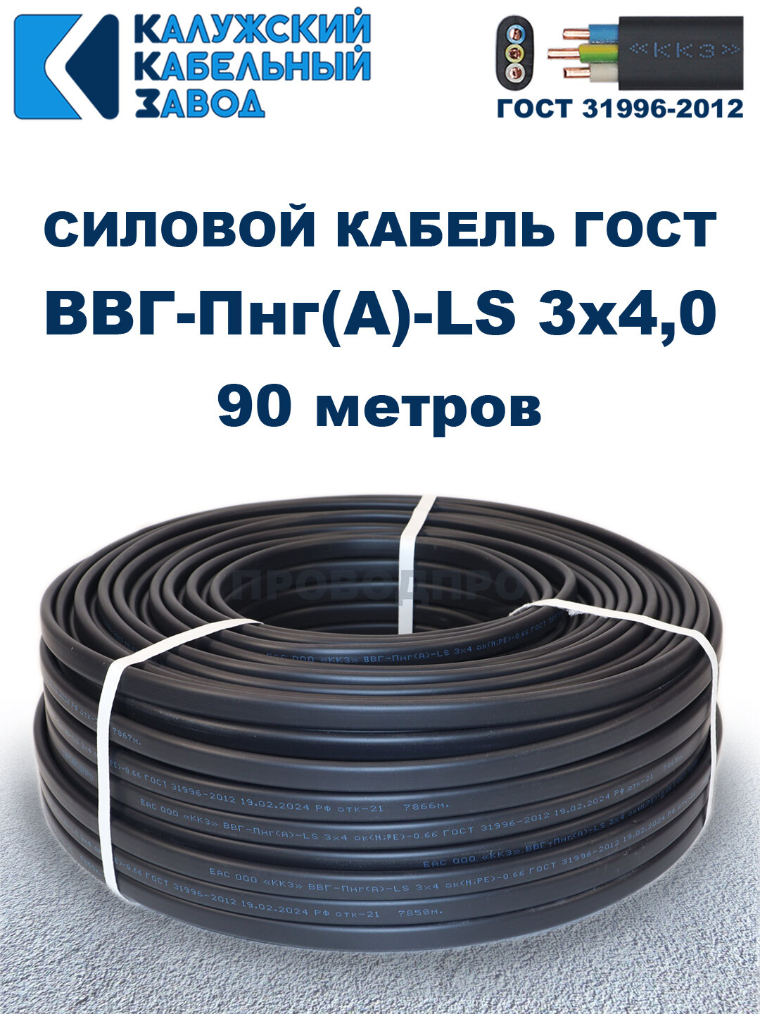 Кабель силовой ВВГ-Пнг(А)-LS 3х4,0 ГОСТ. 90 метров. Кaлyжcкий кабельный зaвoд информация: