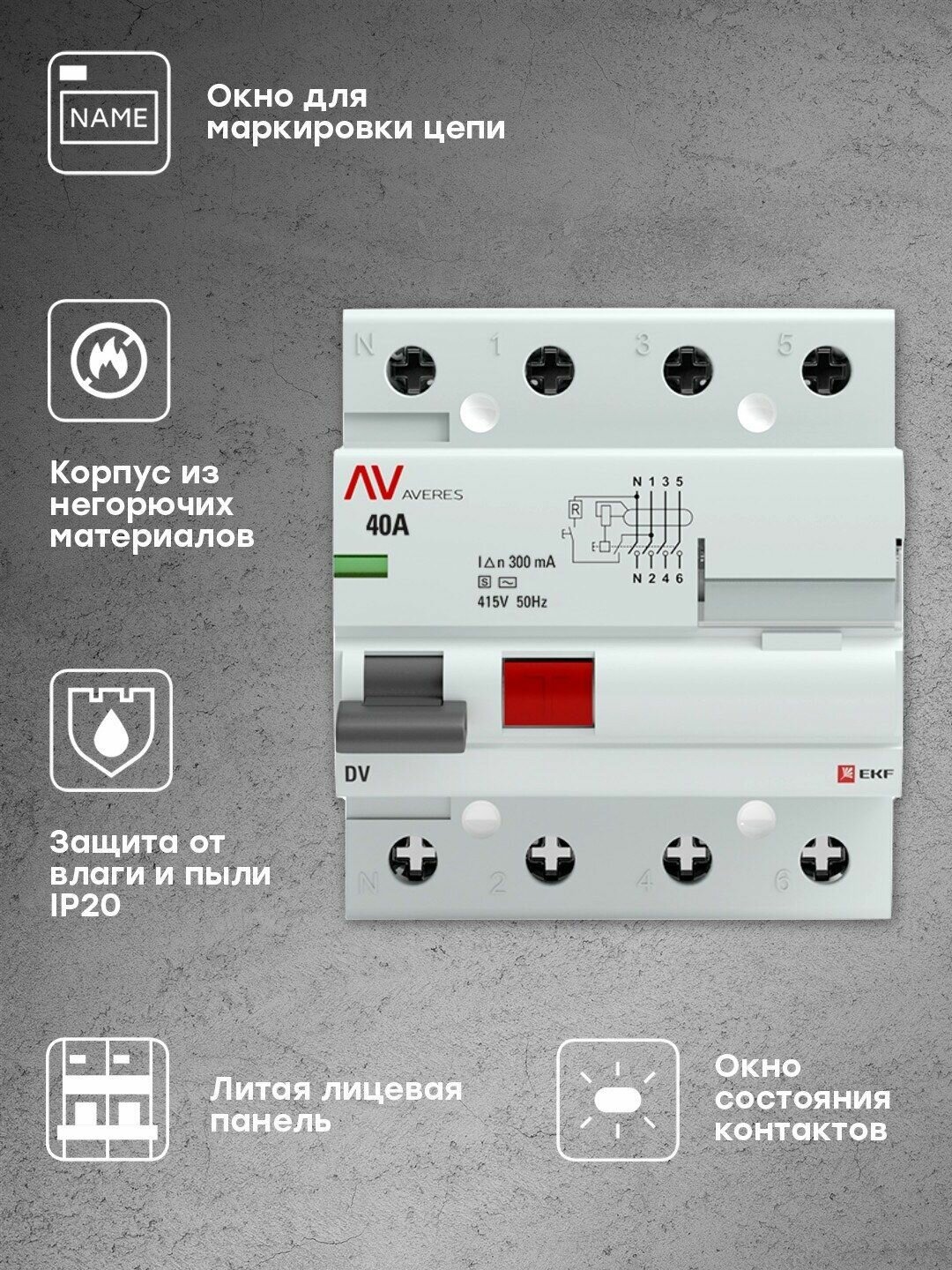 Устройство защитного отключения DV 4P 40А-300мА (S) EKF AVERES информация: