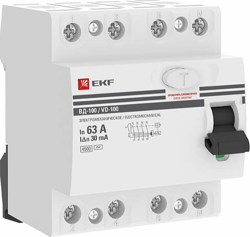 EKF PROxima ВД-100 УЗО 4P 63А/30мА (AC) электромеханическое