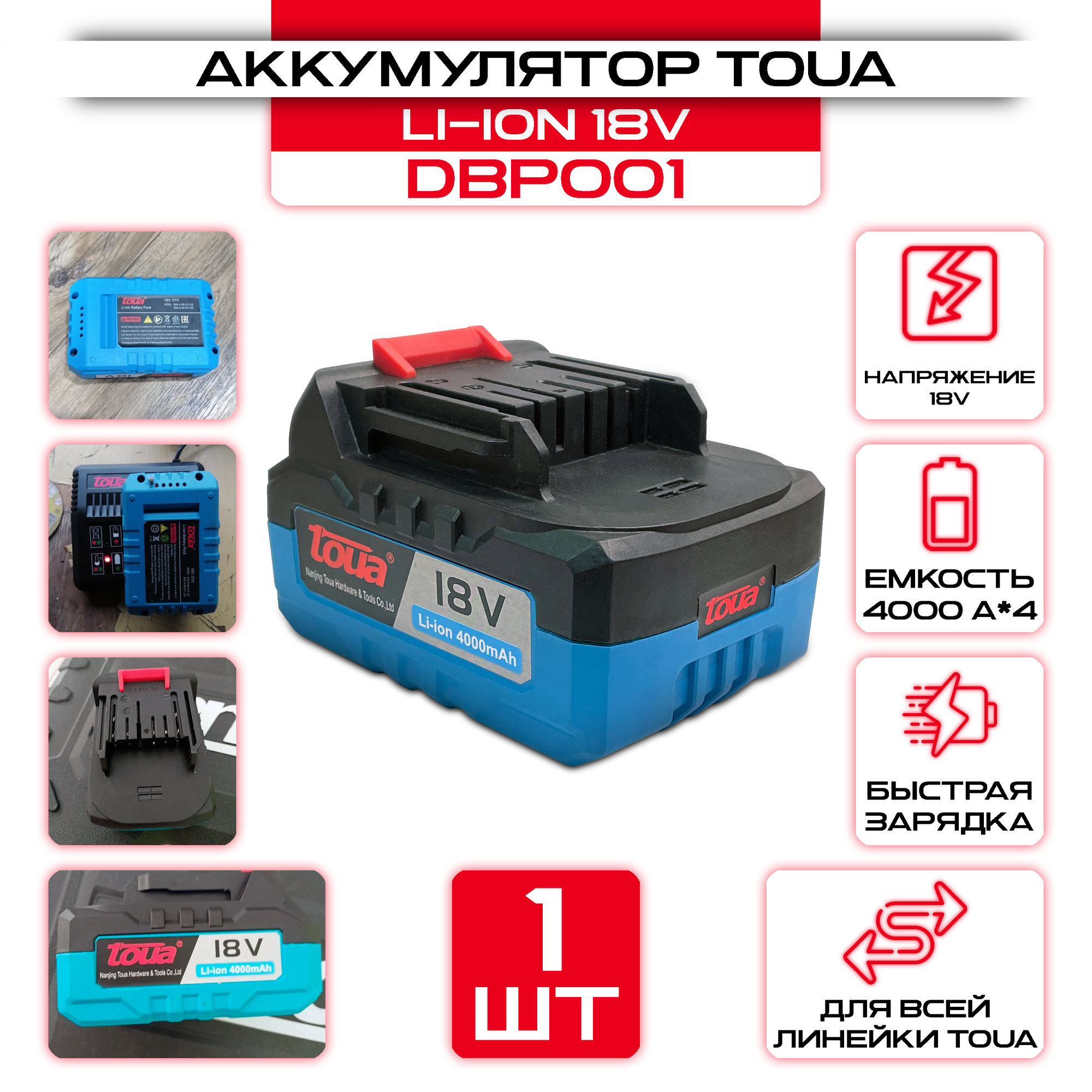 Аккумулятор Li-ion 18V 4ah, TOUA DBP001 информация: