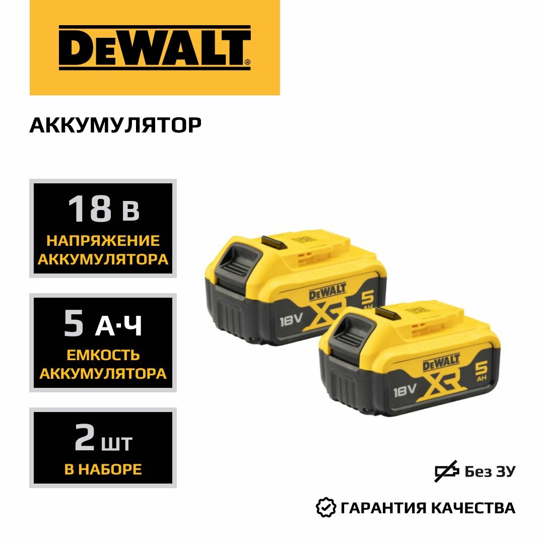 Аккумулятор DEWALT, Li-Ion, 18 В, 5 Ач, 2 шт., DCB184P2 информация: