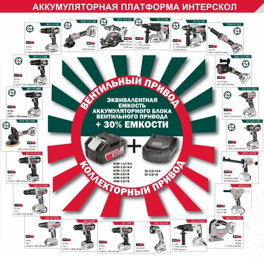 | Совместимость | аккумуляторные инструменты, оснащенные литий-ионными аккумуляторами ДА-18ЭР, ДА-18Л2, ДАУ-10/18Л2, ДА-13/18Л3, ДА-13/18ВК, ДАУ-13/18ВК, ДАУ-13/18В, УШМ-125/18В, УШМ-125/18ВЭ, ДПА-165/18В, ГАУ-350/18ВЭ, ГАУ-600/18ВЭ, ПШМ-8/18ВЭ, УПМ-180/18ВЭ, ШМ-110/18ВЭ, |