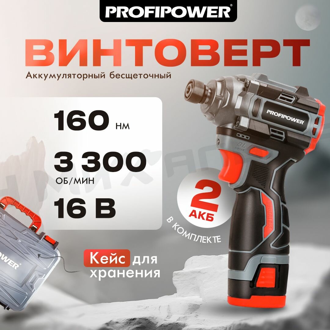 Аккумуляторный винтоверт бесщеточный PROFIPOWER BL-162 16в 160Нм 2акк х 2.0Ah+з. у.