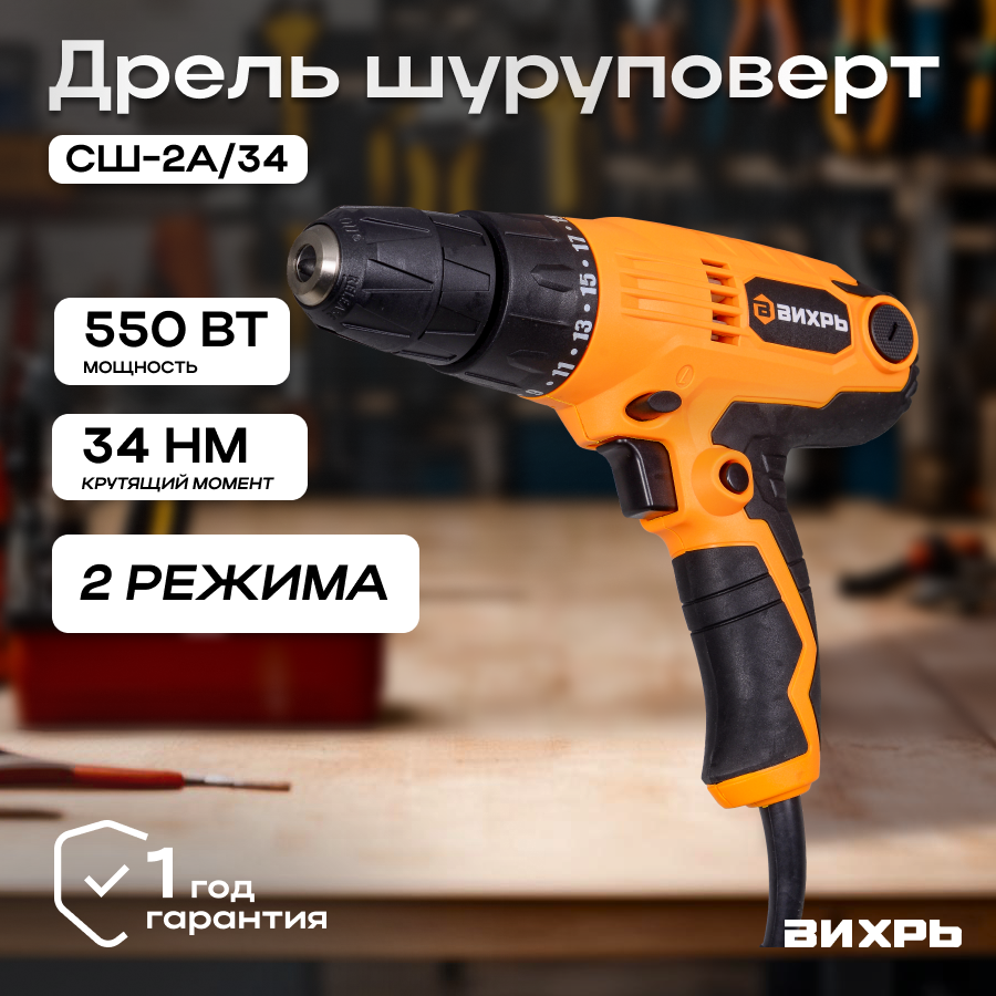 Сетевой шуруповерт Вихрь СШ-2А/34, 550 Вт, 2 скорости, 34 Нм информация: