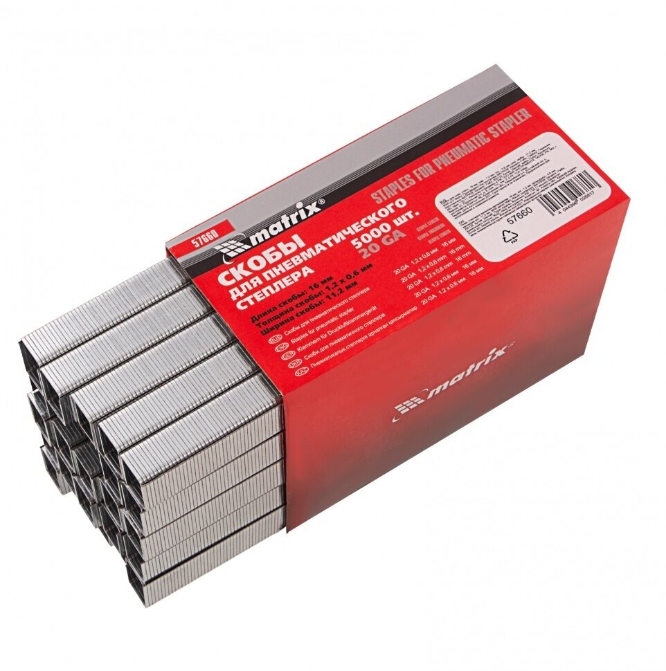 10 цен на Скобы Matrix для пнев. степл. 16 мм, шир. - 1, 2 мм, тол. - 0, 6 мм, шир. скобы - 11, 2 мм, 5000 шт 57660