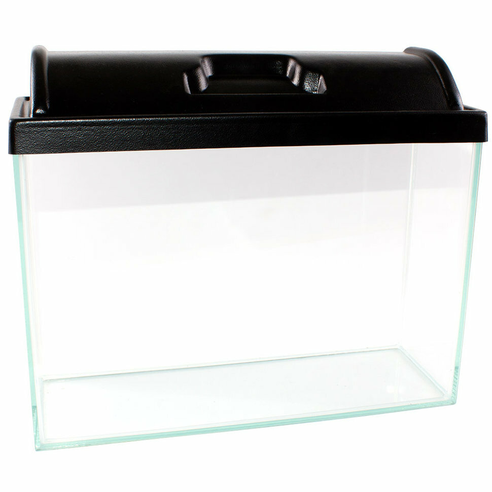 Аквариум прямоугольный для рыбок, креветок с черной крышкой - 15 л. информация: