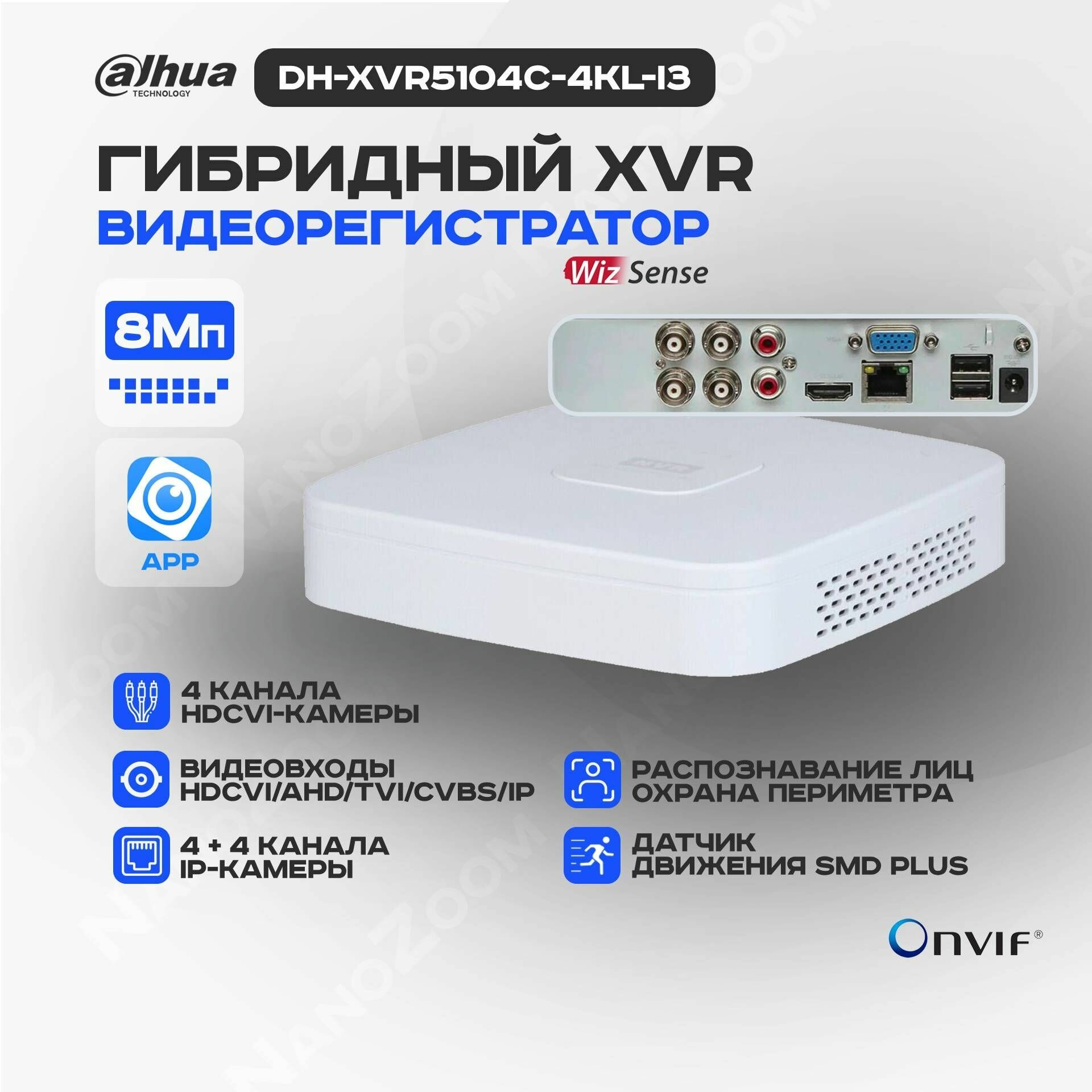 DAHUA DH-XVR5104C-4KL-I3 4-канальный HDCVI-видеорегистратор с FR, видеоаналитика, до 8 IP ка информация: