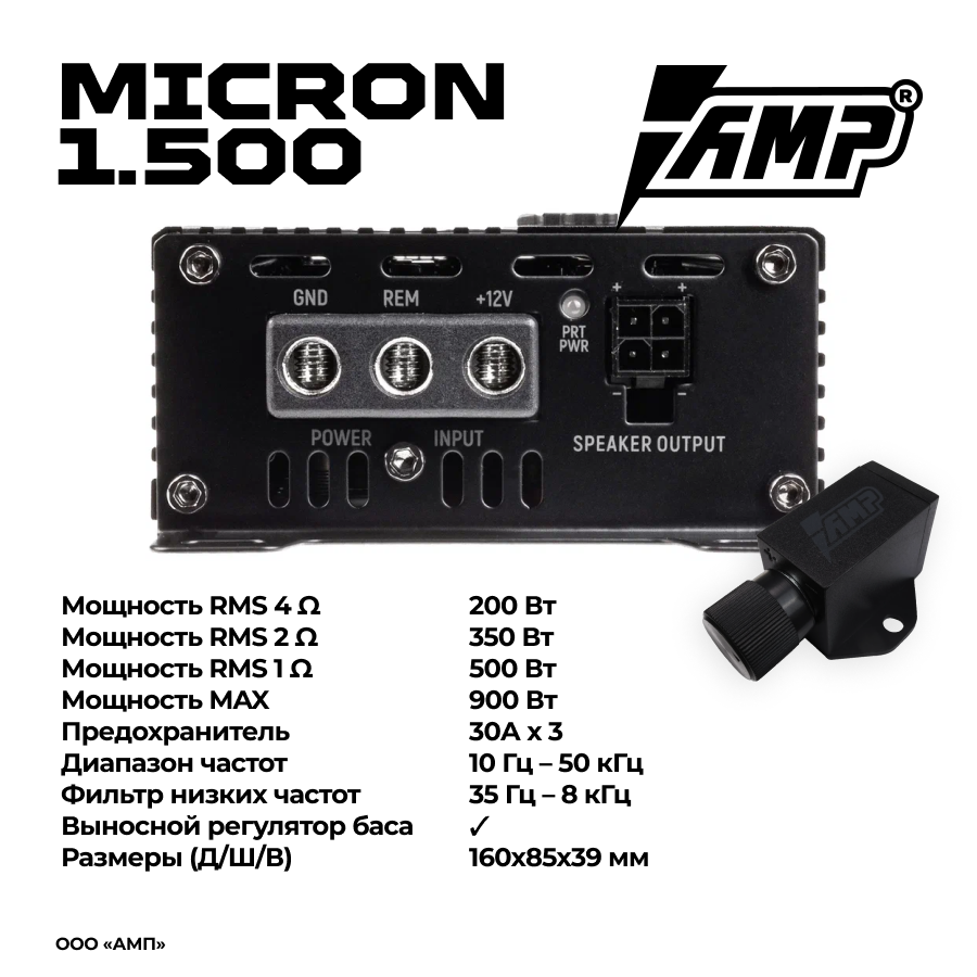 Отзывы на Усилитель AMP Micron, 4х80Вт, для всех автомобилей, черный, 85х39х16