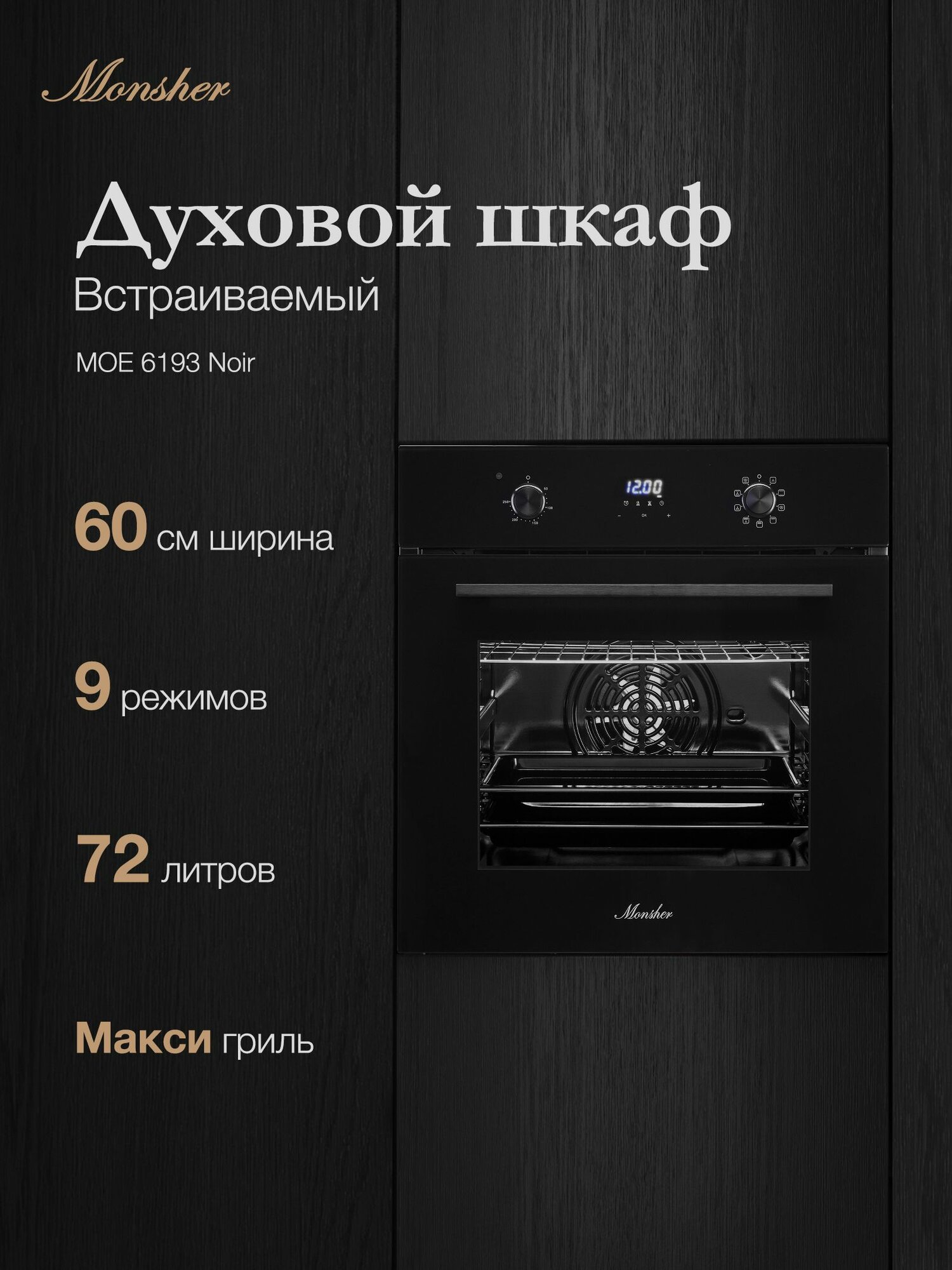Электрический духовой шкаф Monsher MOE 6193 Noir информация: