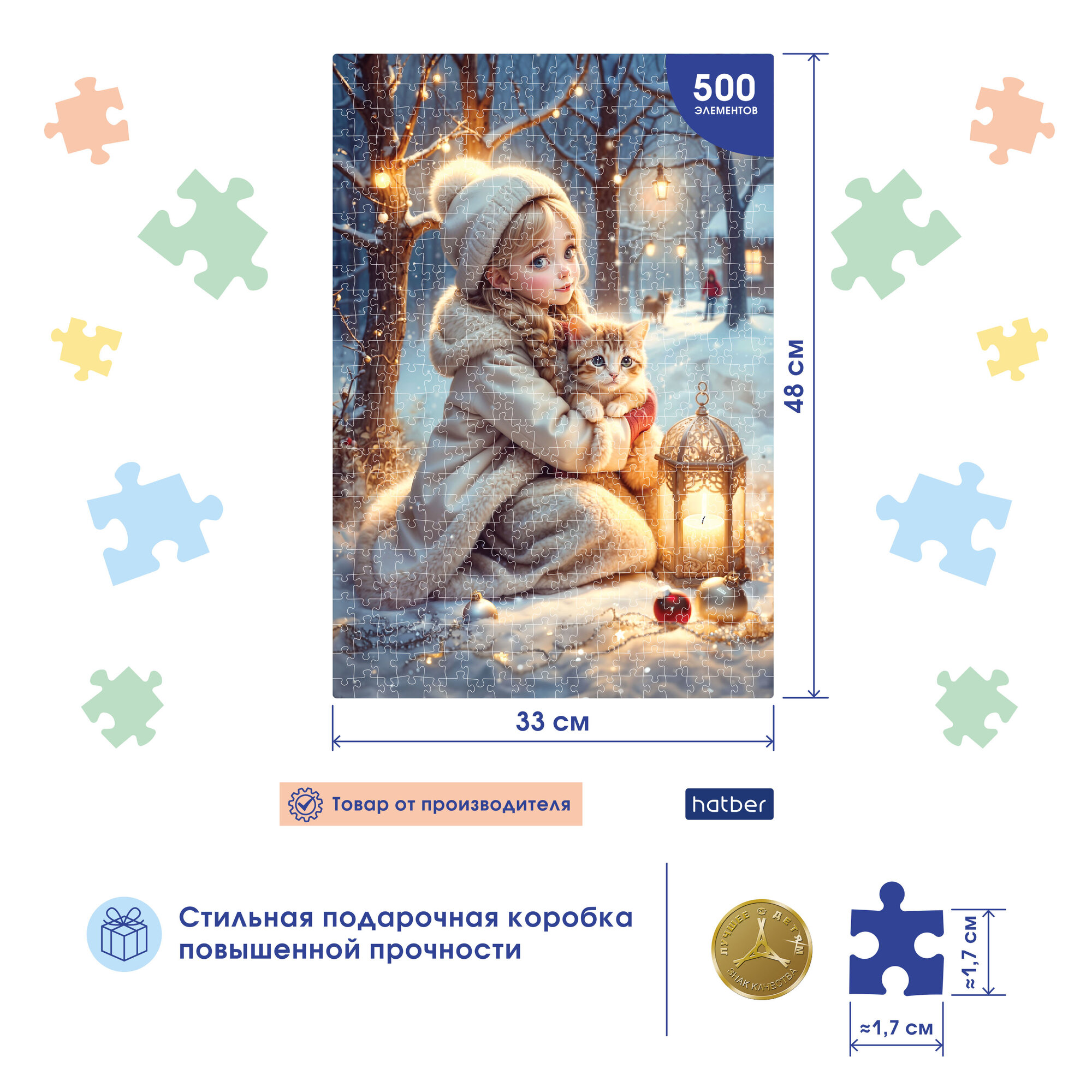 Пазлы для детей Hatber Любимый котик 500 элементов, 33 x 48см информация: