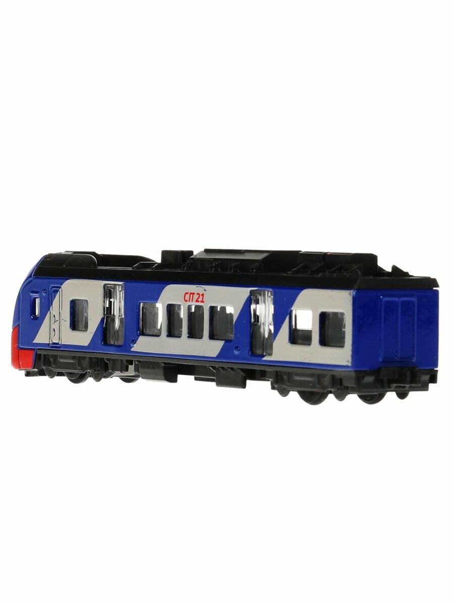Модель металлическая инерционная пассажирский электропоезд 17 см двери открываются Цвет Синий технопарк ELTRAIN-17-BUSR