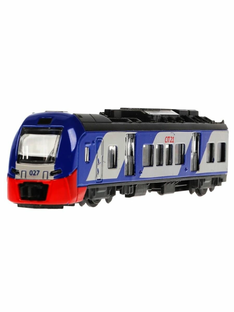 Игрушка для мальчика Пассажирский электропоезд Технопарк детская модель металлическая коллекционная инерционная синий 17 см
