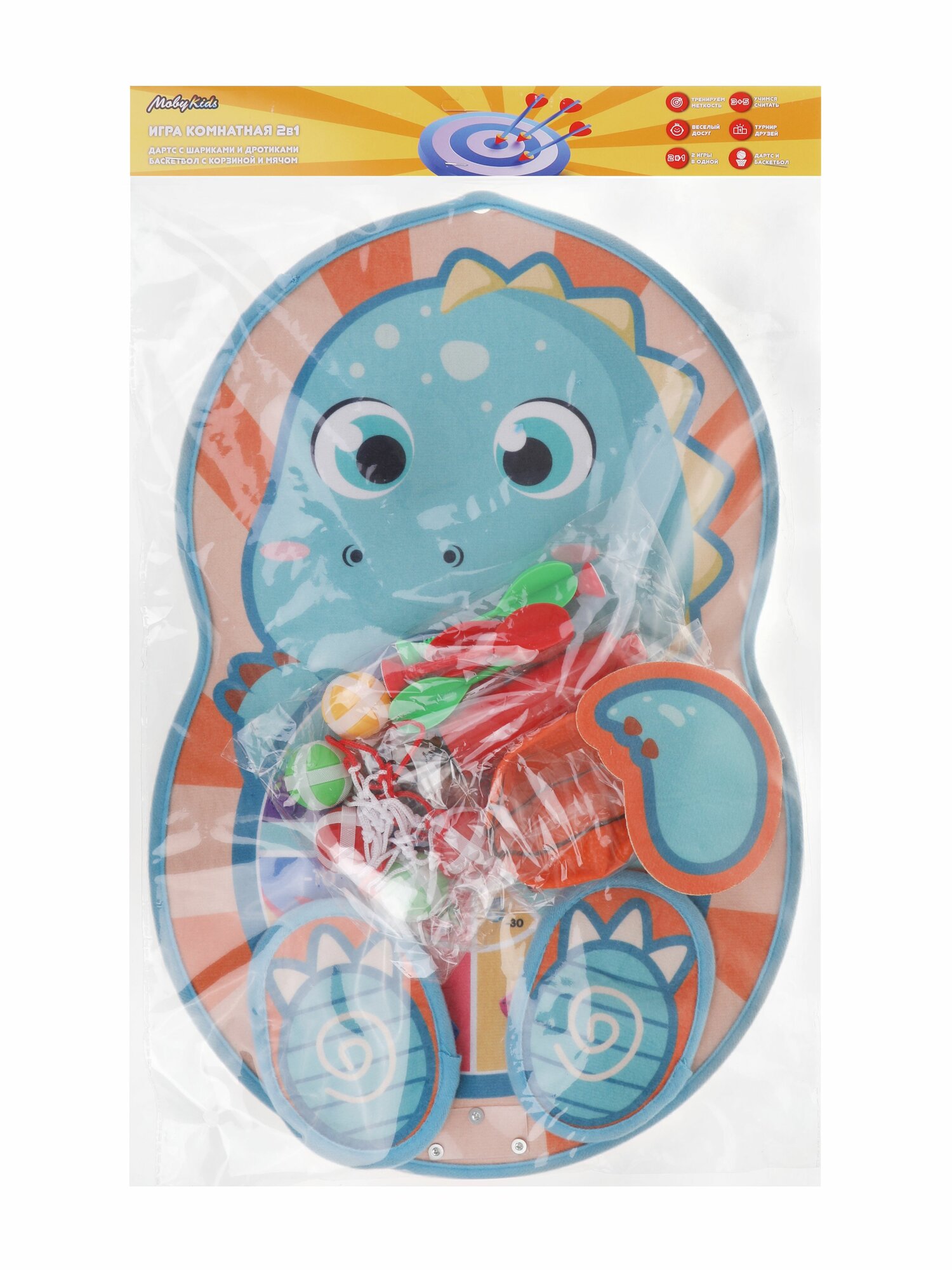 Игра комнатная Дино: Дартс с липучкой двусторонний 21 см. 2 в 1 с баскетбольным кольцом Moby Kids 76872 1 030 ₽