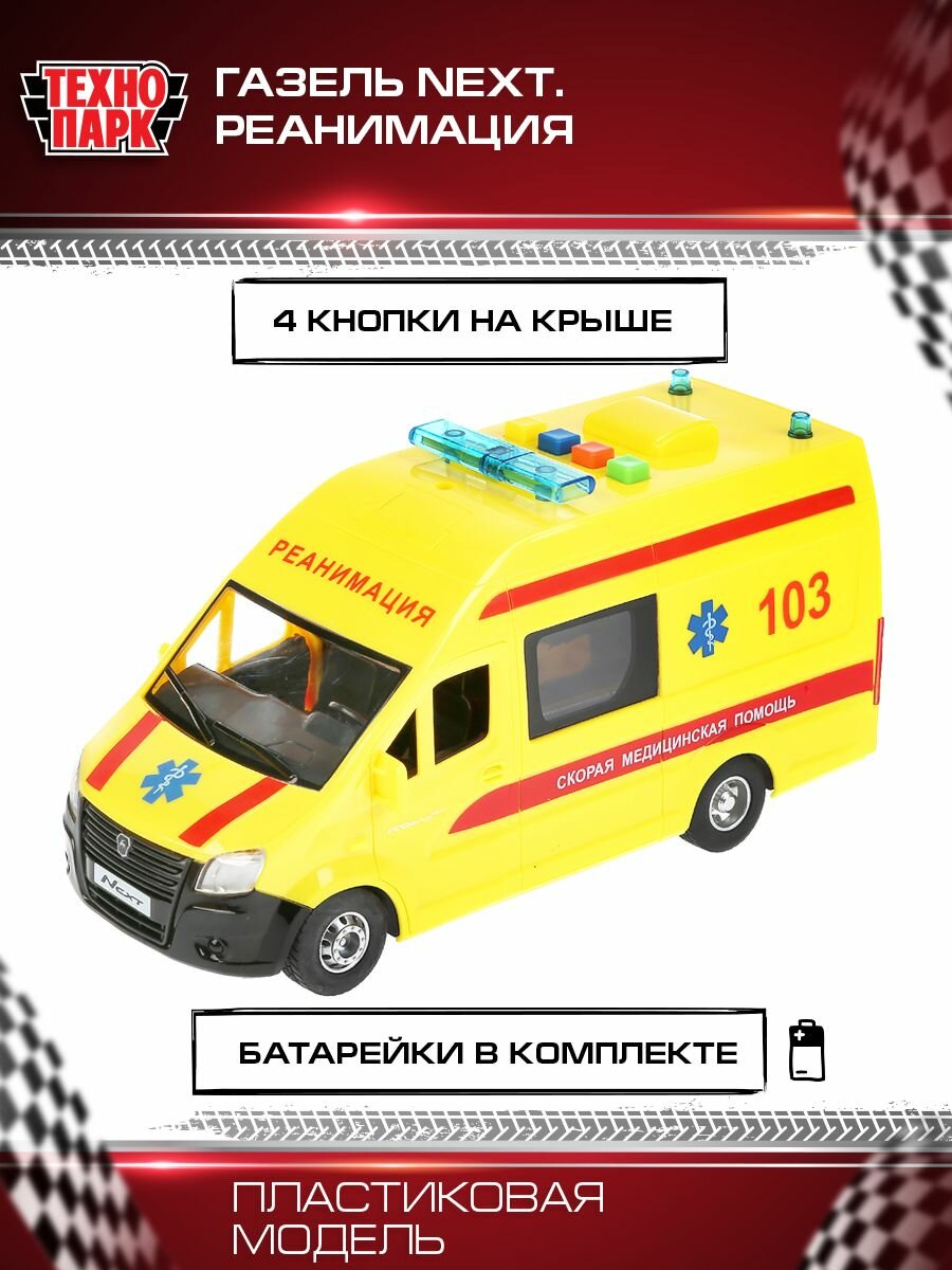 10 цен на Машинка детская Газель Некст Реанимация 22.5 см, Технопарк, пластик, открываются двери и кузов, свет и звук