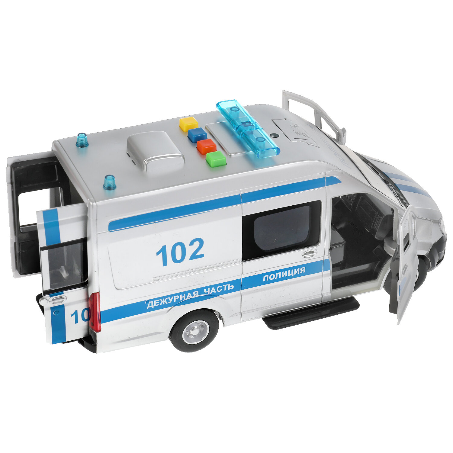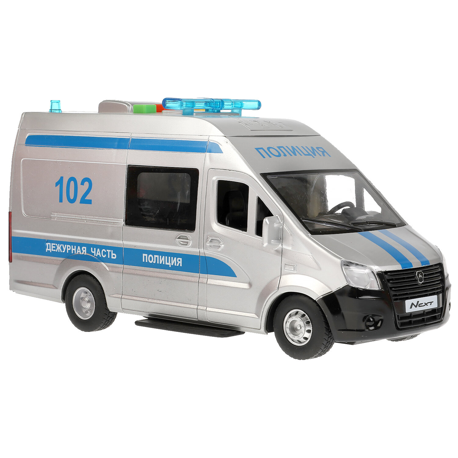 Отзывы на Машинка детская Газель Некст Полиция 22 см, Технопарк, серебристая, пластик, открываются двери и кузов, свет и звук