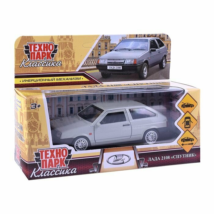 10 цен на Машинка детская Лада ВАЗ 2108 Спутник 12 см, Технопарк, серебристая, открываются двери и багажник, металлическая