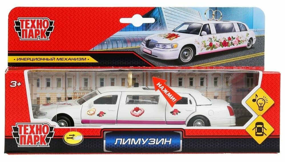 Машинка инерционная ТехноПарк Свадебный лимузин со светом и звуком, CT-10-105L