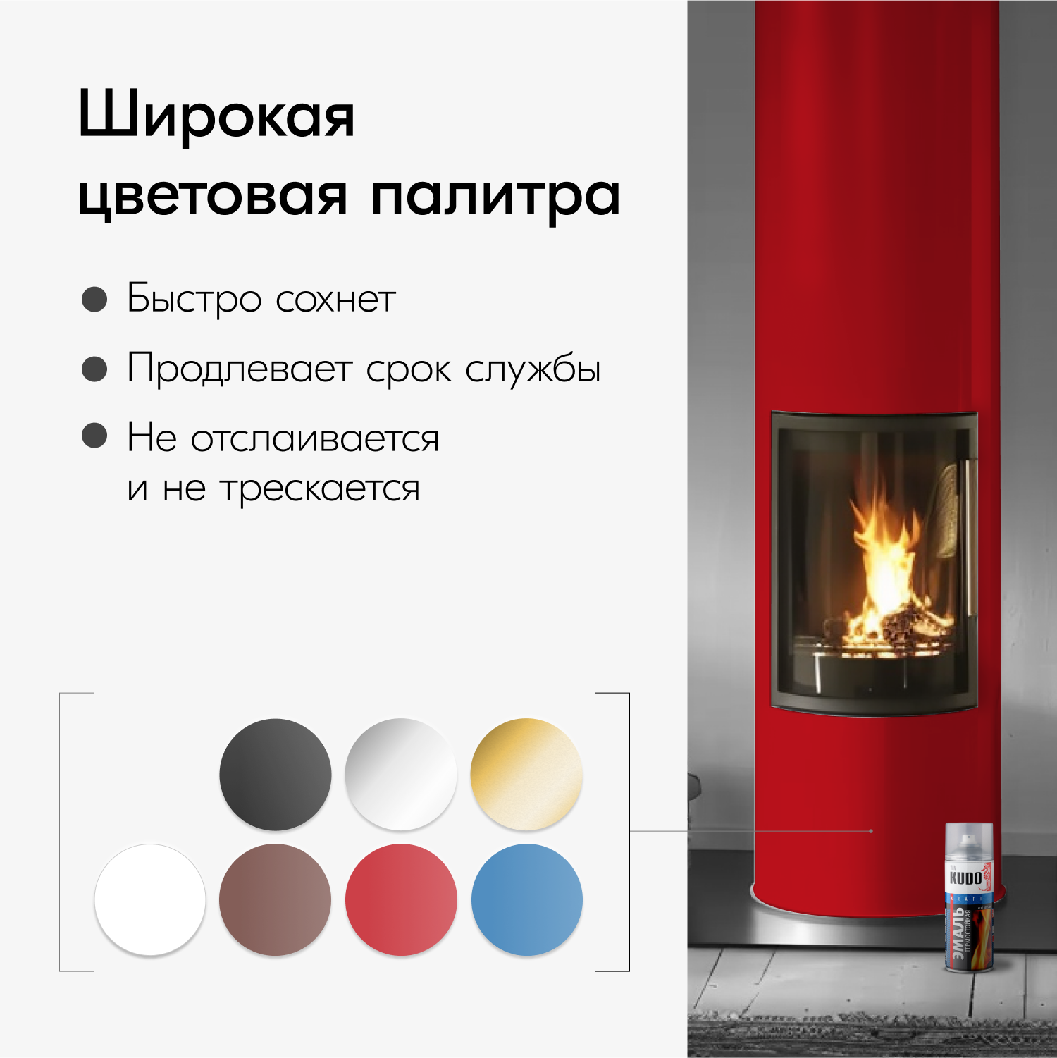 Эмаль термостойкая KUDO красная, KU-5005 301 ₽