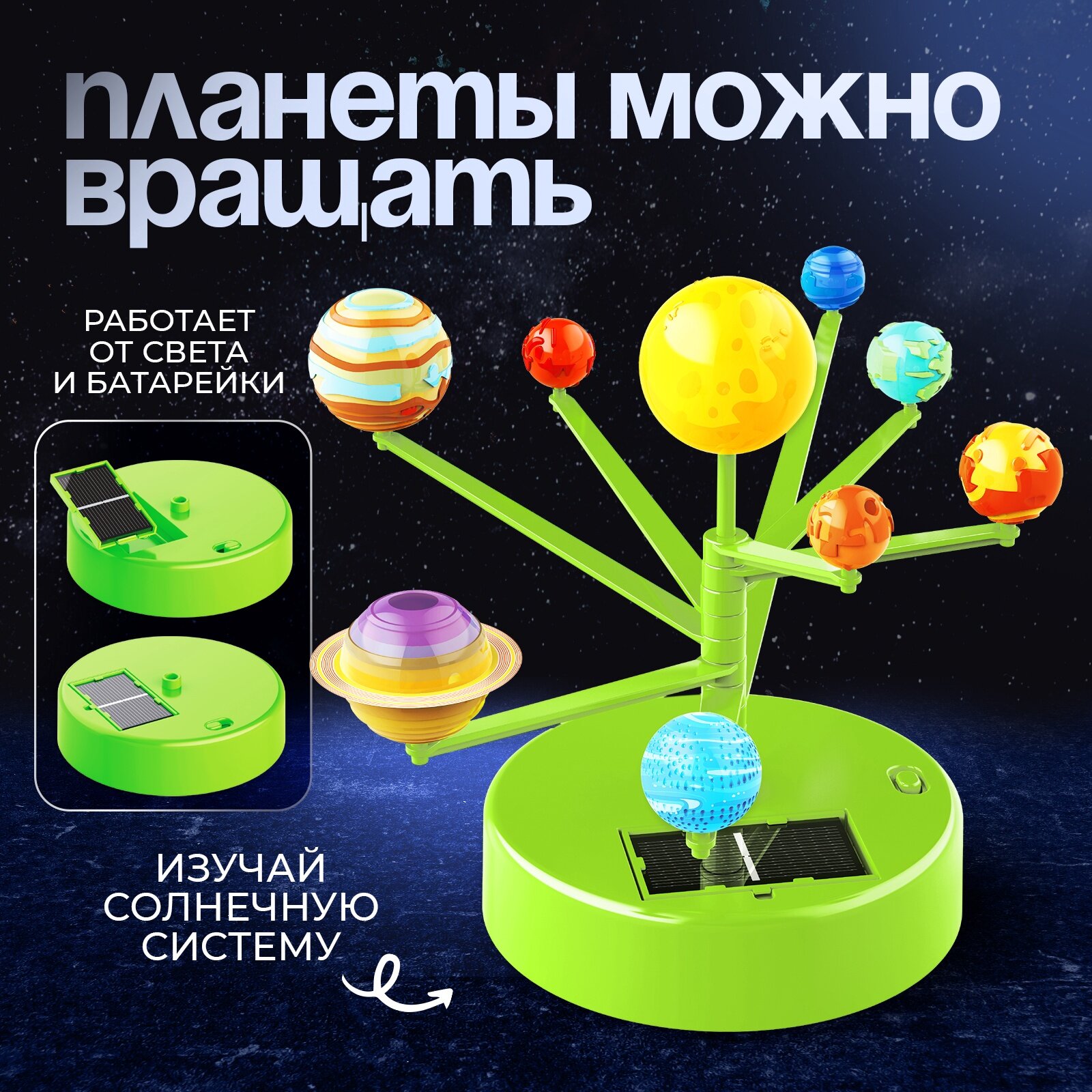 | Дополнительная информация | С набором для опытов «Движение планет» ребёнок соберёт планетарий, узнает больше о планетах и их орбитах, а также проведёт опыт и увидит движение небесных тел. |