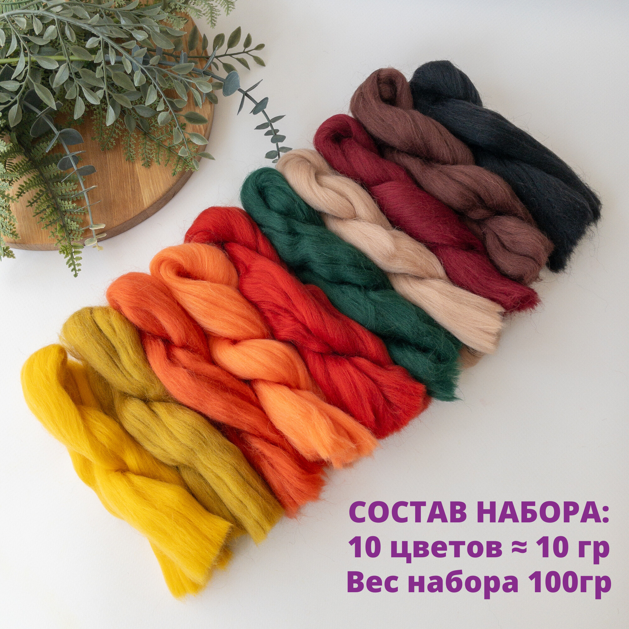 Шерсть для валяния, полутонкая шерсть 100 %, Осенний Микс, набор 10 цветов, 100 г 660 ₽