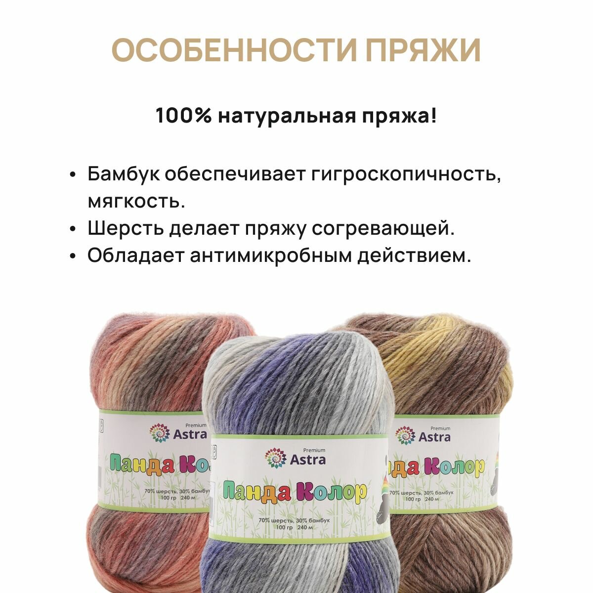 Пряжа для вязания Astra Premium 'Панда Колор' 100г, 240м (70% шерсть, 30% бамбук) (02 секционный), 3 мотка информация: